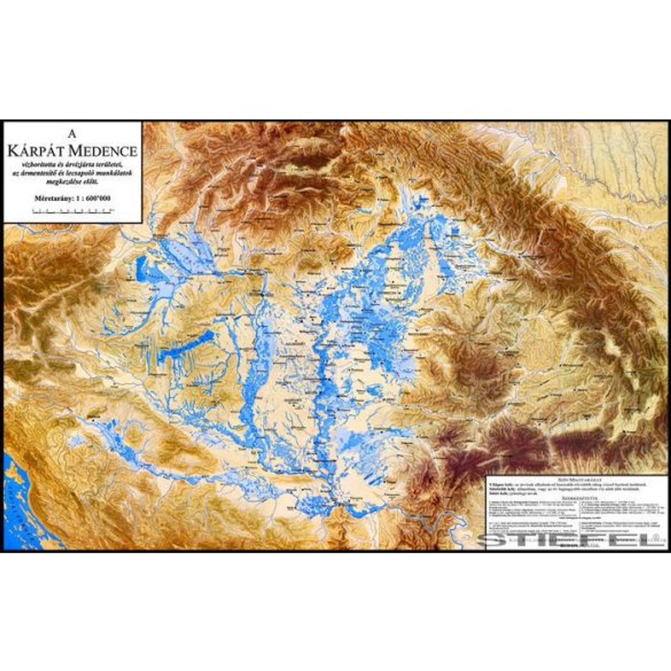 A Kárpát-medence vízborította és árvízjárta területeinek térképe 100 x 70, fémléces - Stiefel