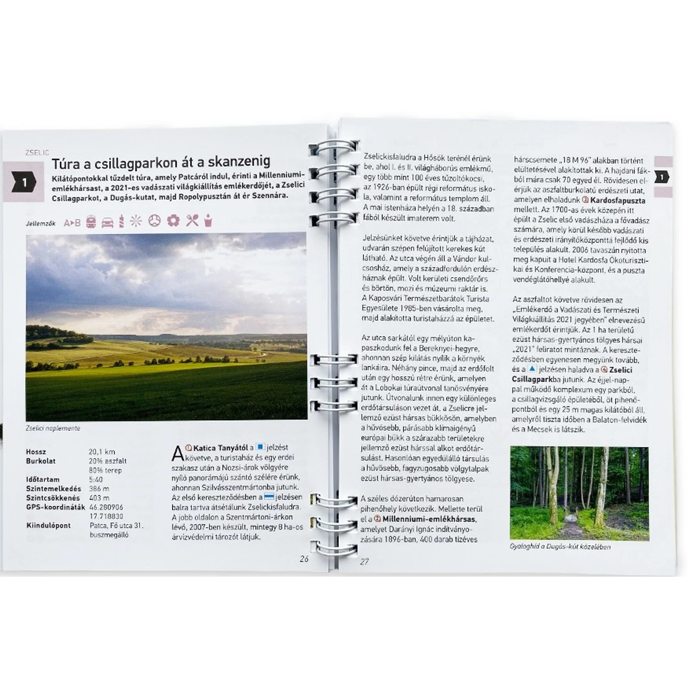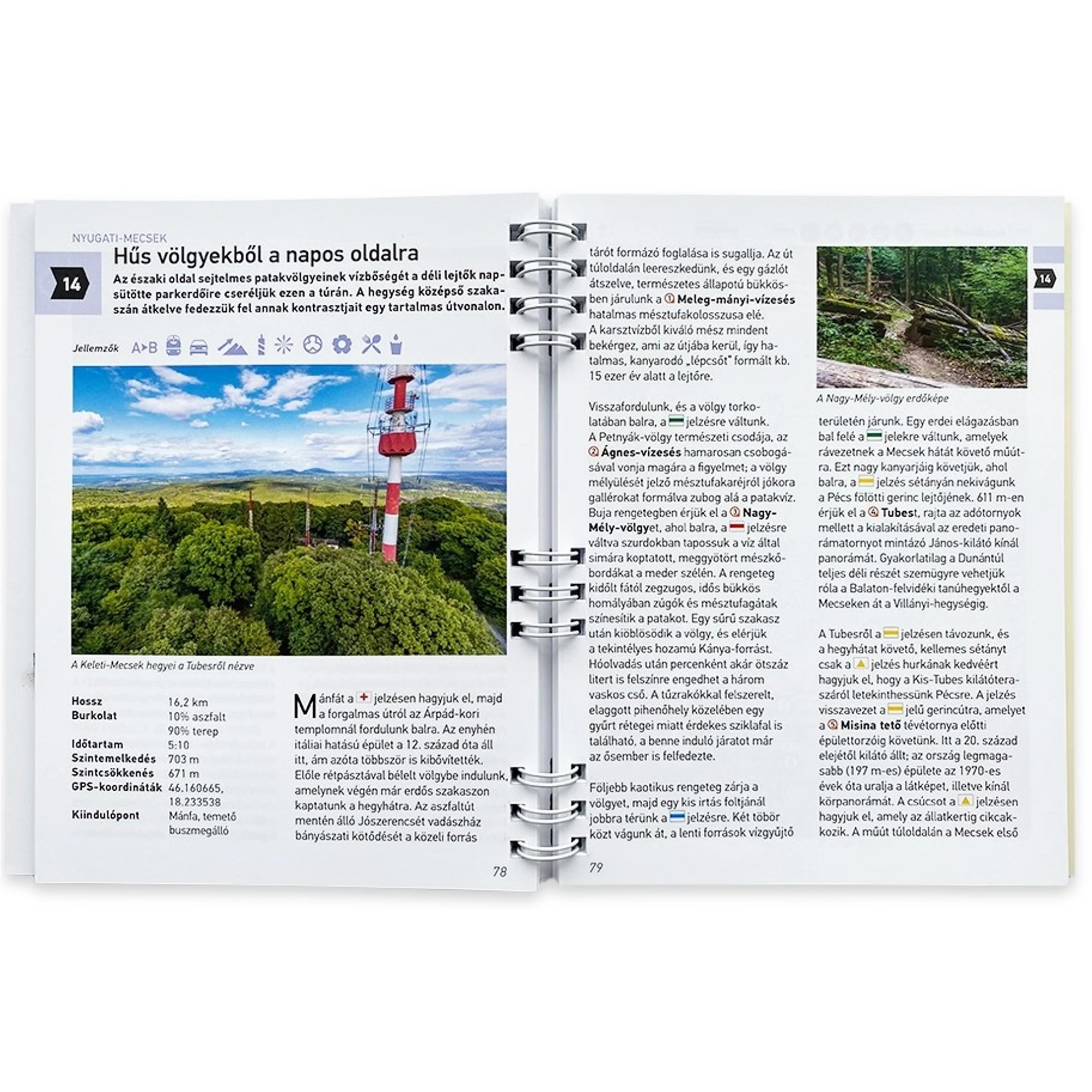A könyvből azonban nem maradhattak ki a Mecsek alacsonyabb szomszédjai sem. Az elvonulásra csendes zugaival kiválóan alkalmas Zselicből, a különleges élővilágú Szársomlyó körül, a híres borvidék dűlői között izgalmas szőlőhegyi kalandokat tartogató Villányi-hegységből, valamint a Mecsek kis testvérének is felfogható Szekszárdi-dombságból szintén beválogattak párat e kötet 40 túrája közé.