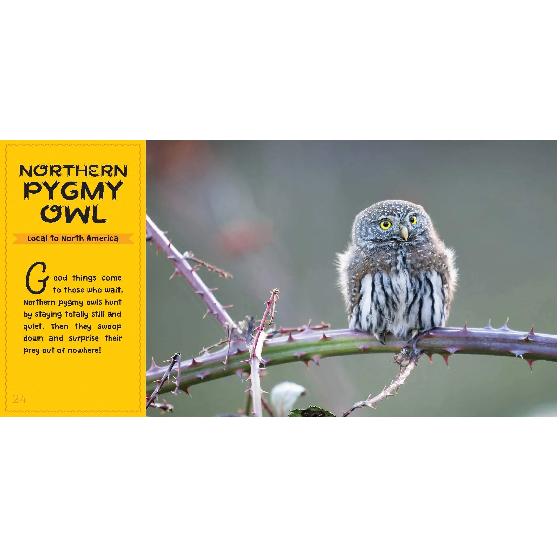 Starting from North America, you’ll travel through all the continents of the world to meet 100 outrageously cute creatures. Say a big "hello" to the fennec fox from the deserts of Africa, the northern pygmy owl from the western United States, the European hedgehog, Siberian chipmunk, the New Zealand fur seal and the bearded emperor tamarin from South America.