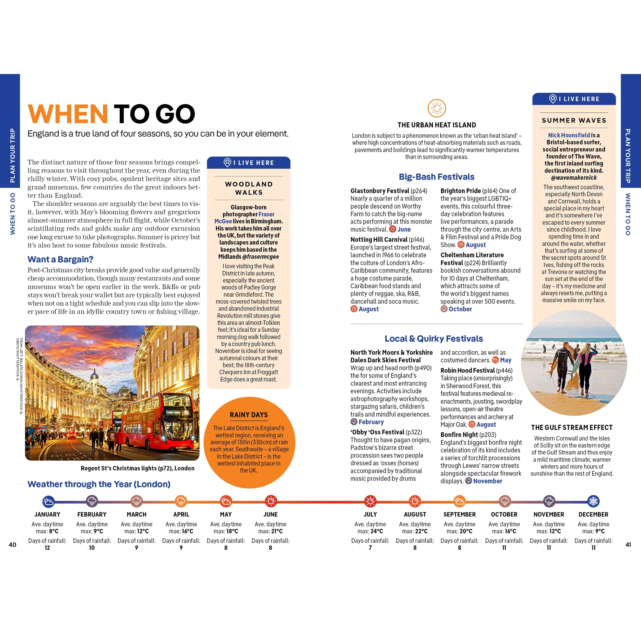 • Covers: London; Canterbury & Southeast England; Oxford, the Cotswolds & the Thames Valley; Bristol, Bath & Southwest England; Devon & Cornwall; Cambridge & East Anglia; Birmingham & the Midlands; Yorkshire; Manchester, Liverpool & Northwest England; The Lakes, Cumbria & the Northeast