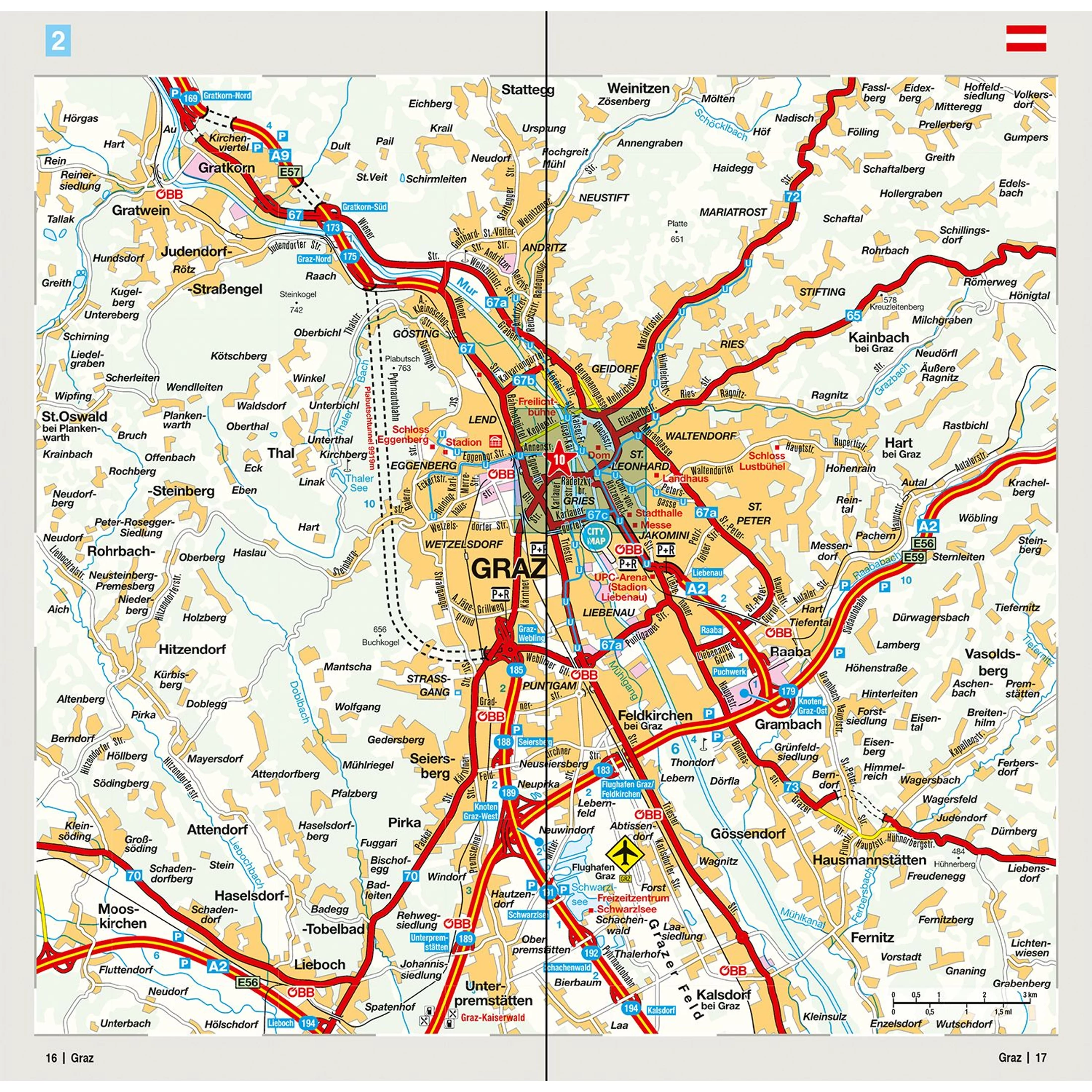 Ausztria résztérkép 2. - Salzburg, Karintia, Stájerország, Dél-Burgenland