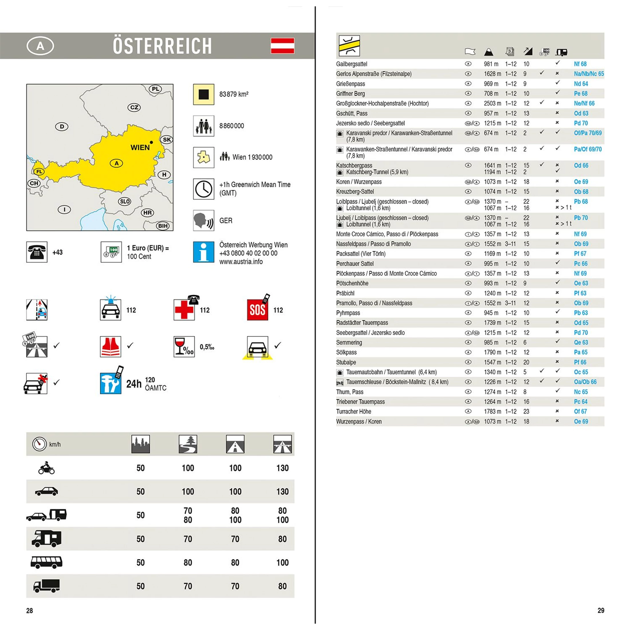 • fizetős utak, forgalomkorlátozások, szezonális lezárások,