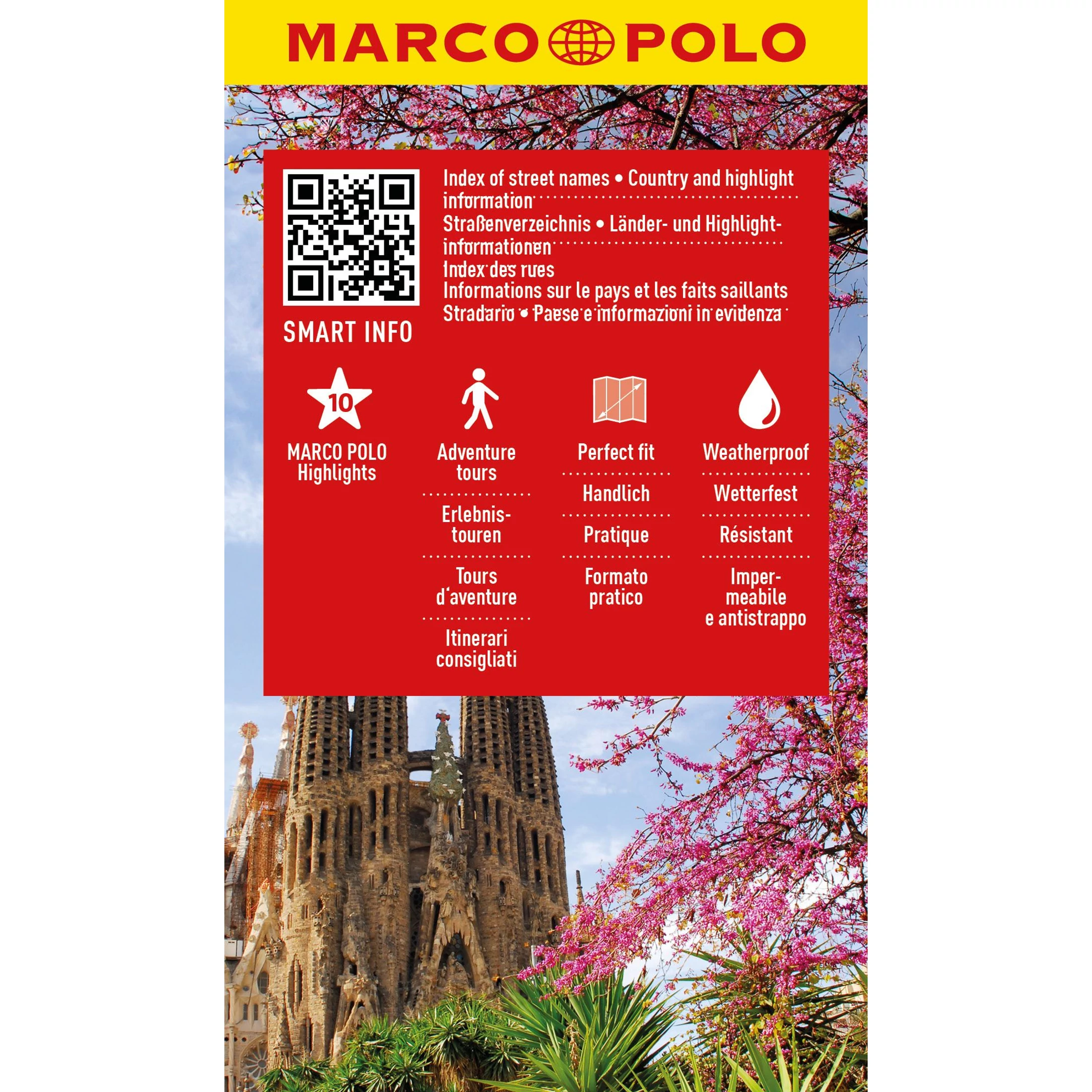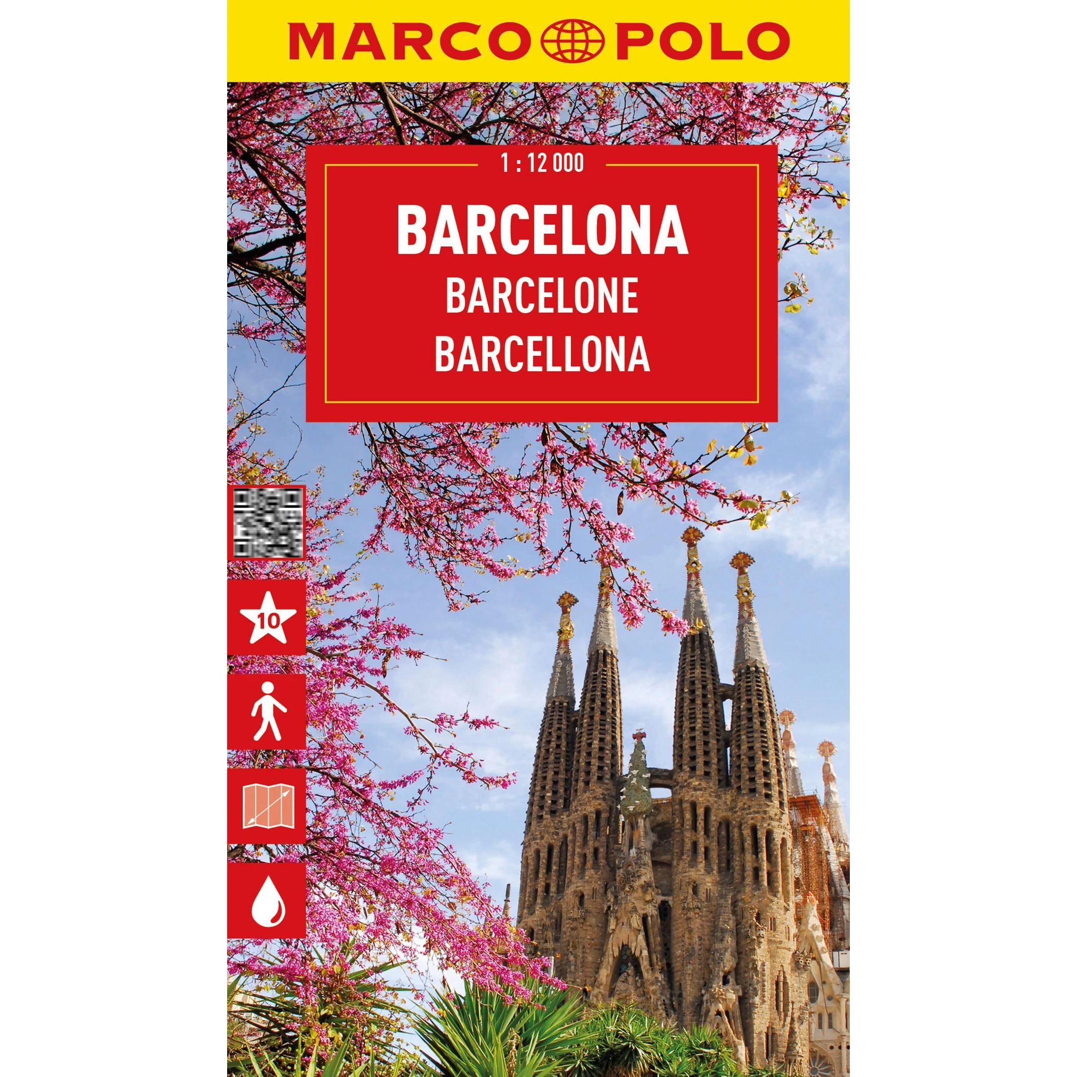 Barcelona laminált, vízálló várostérképe tömegközlekedéssel, utcanévjegyzékkel és többnyelvű jelmagyarázattal. Alkoholos filccel írható. Tartalmazza a fontosabb látnivalókat és turisztikai információkkal is szolgál. Minden lényeges információt tartalmaz, ami egy villámlátogatáshoz szükséges. Méretarány: 1:12 000