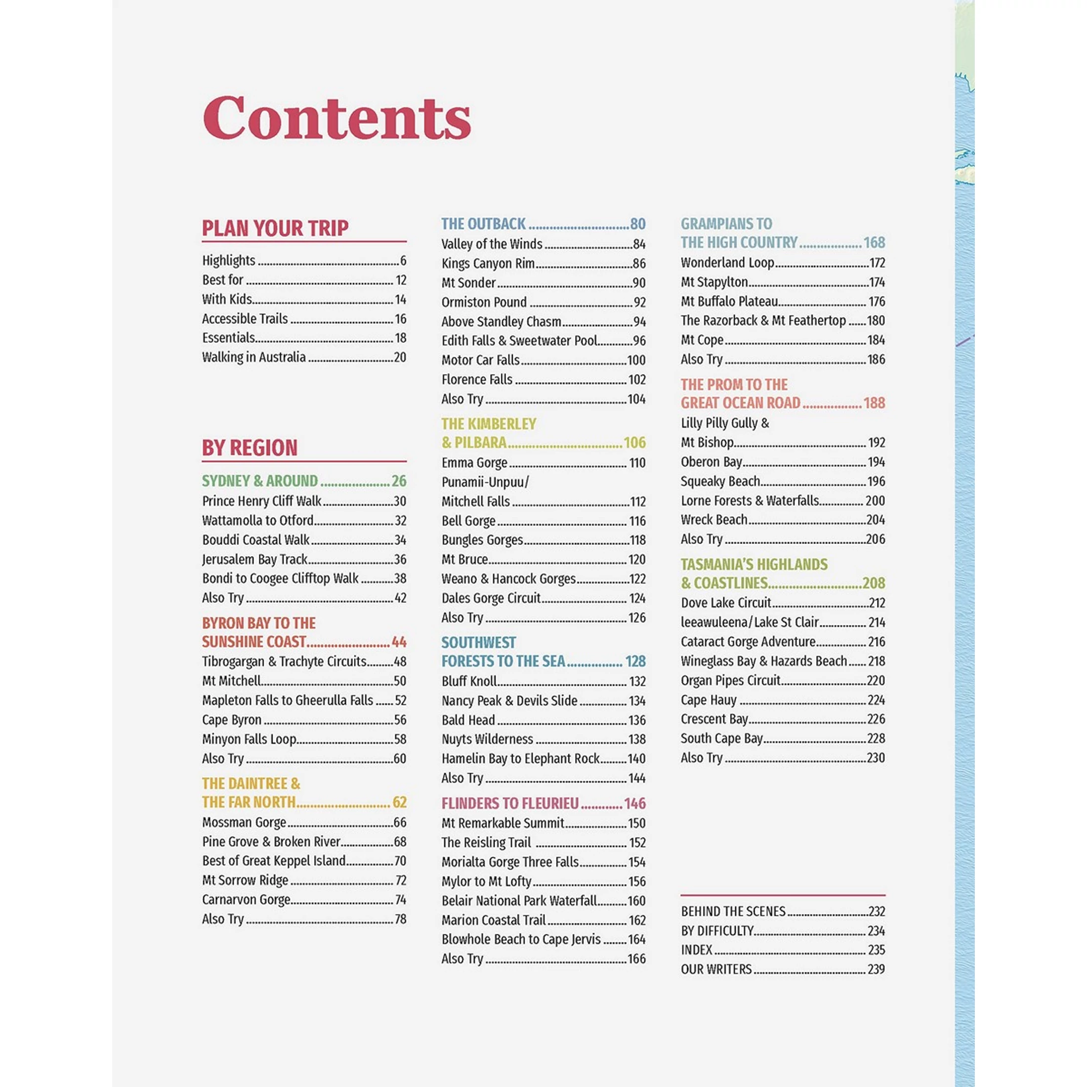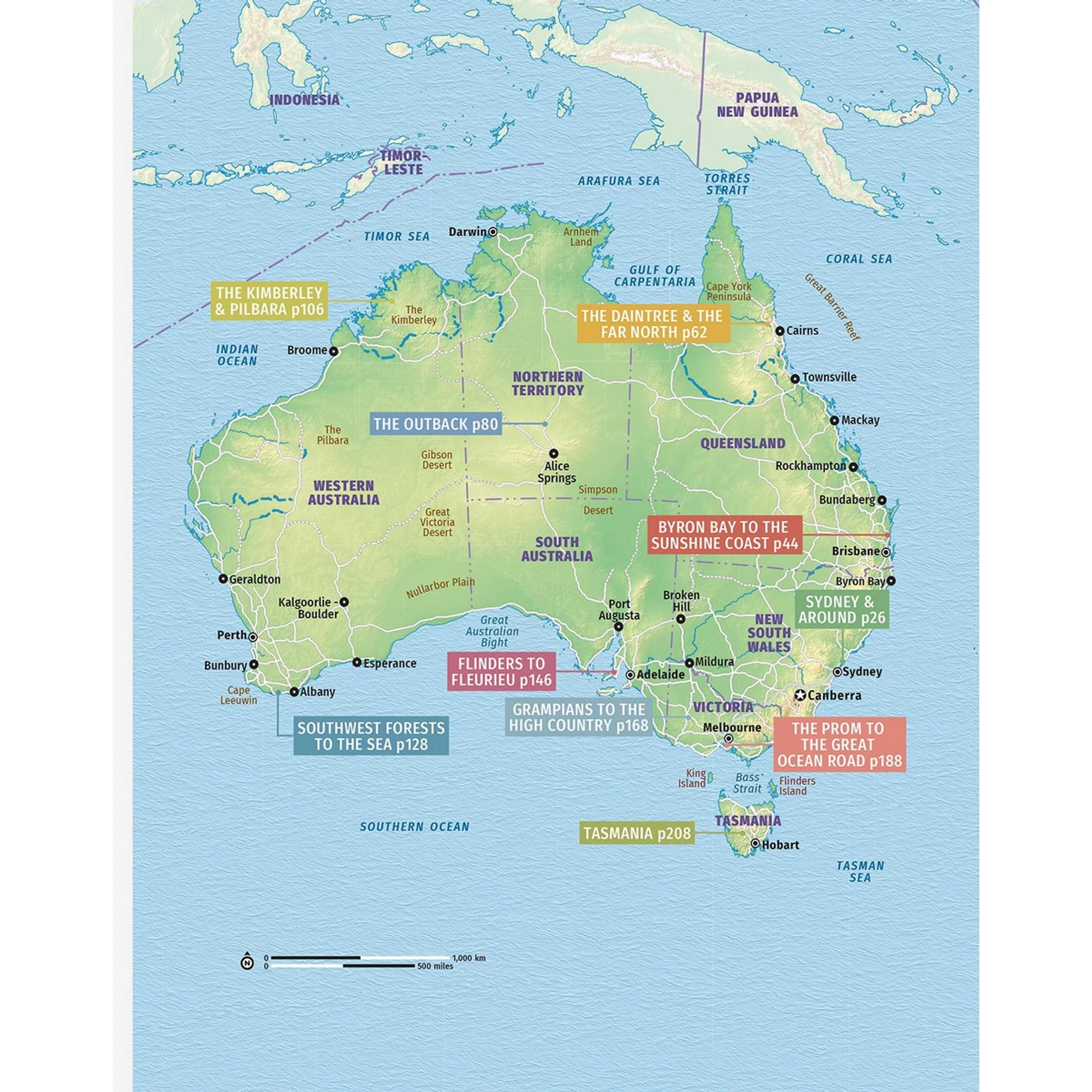 Sydney & Around, Byron Bay to the Sunshine Coast, The Daintree & the Far North, the Outback, The Kimberley & Pilbara, Southwest Forests to the Sea, Flinders to Fleurieu, Grampians to the High Country, the Prom to the Great Ocean Road, and Tasmania