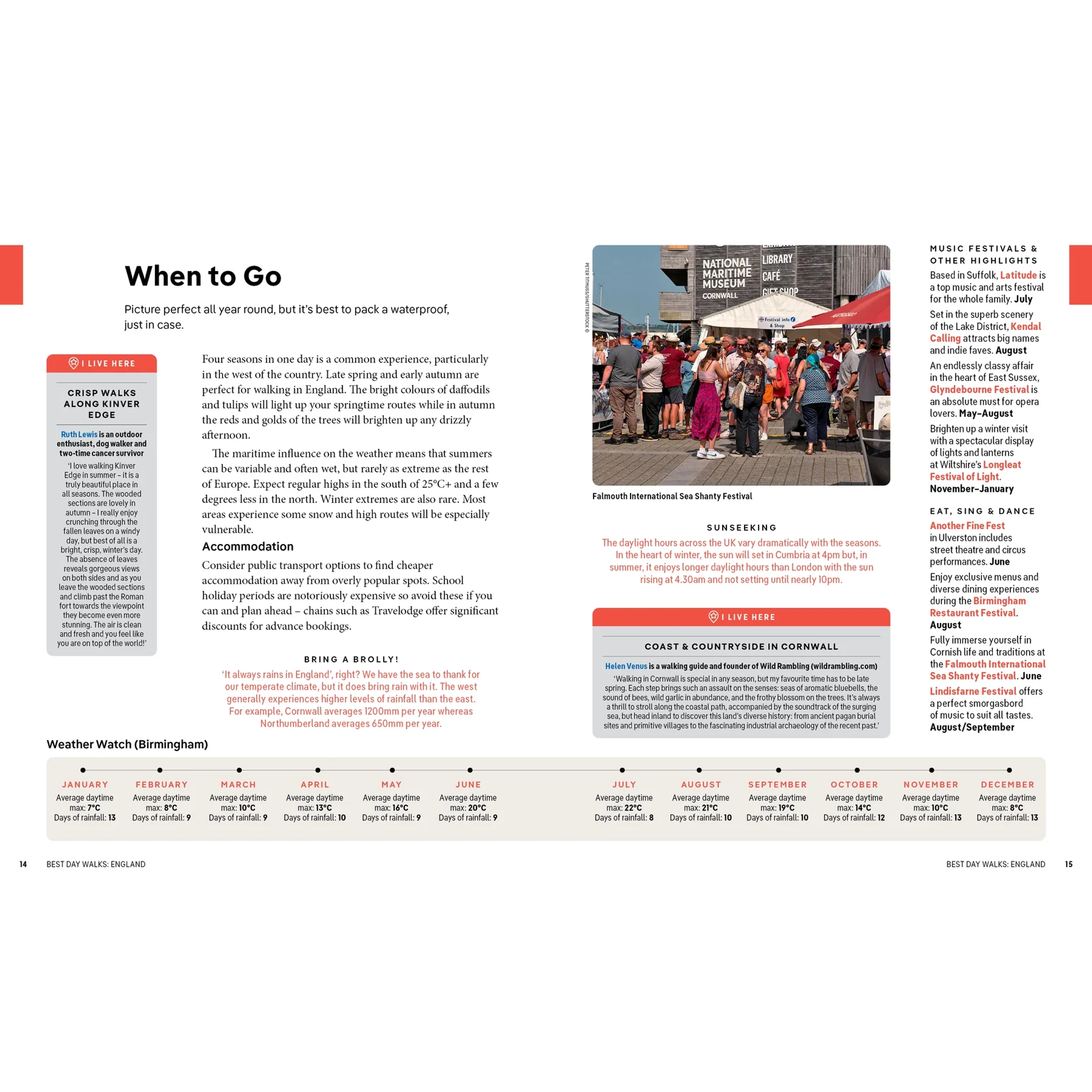 • Regional profiles provide an overview of the area, local transport, unmissable calendar events, where to stay and the best walks to complete