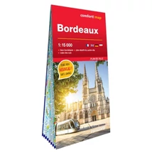 Kétoldalas, laminált, könnyen kezelhető turisztikai térkép 1:15 000 (1 cm = 150 m) méretarányban. Gazdag tartalommal, Bordeaux belvárosáról részletesebb, 1:10 000 méretarányú térképpel.