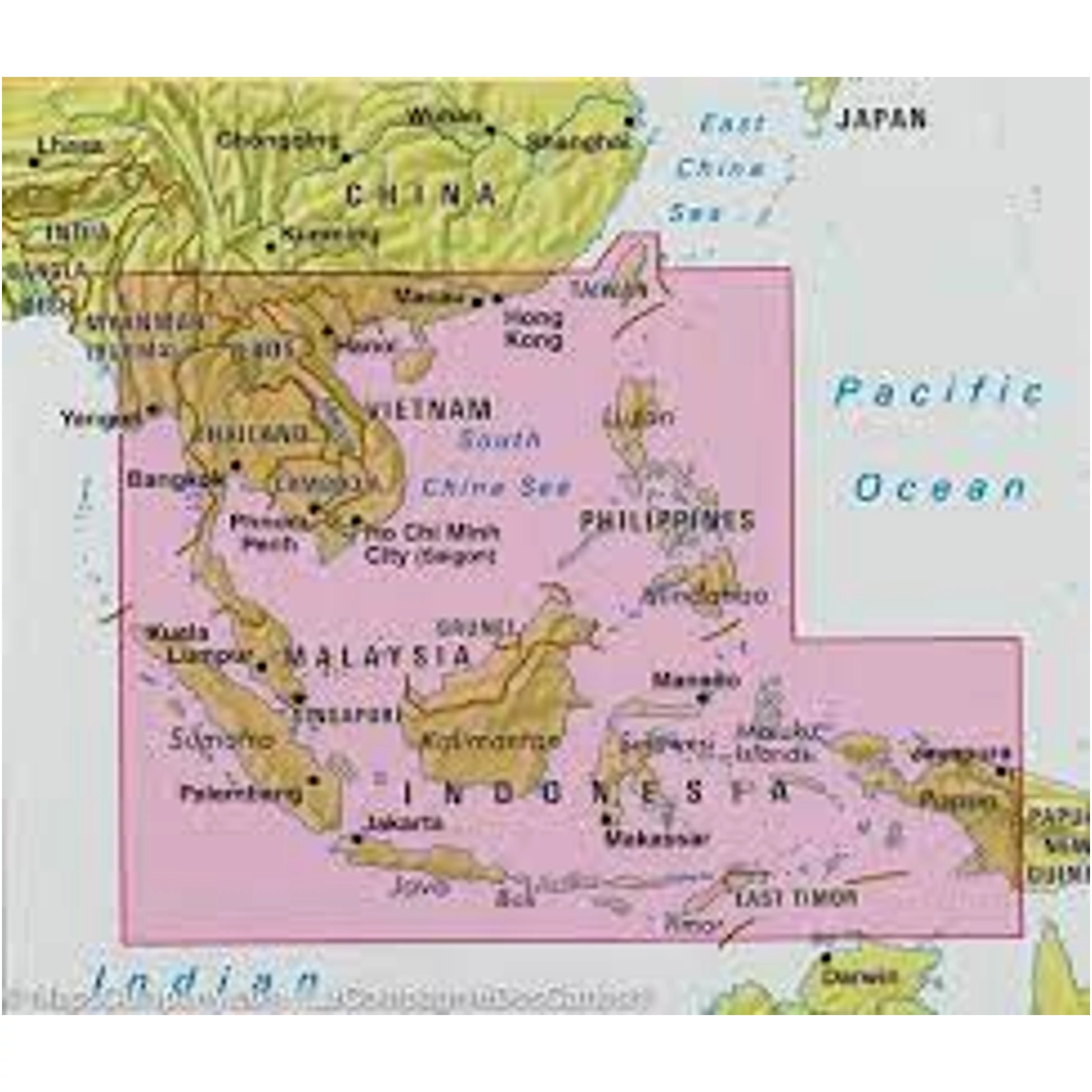 A térkép tartalmazza: Thaiföld, Laosz, Kambodzsa, Vietnam, Malajzia, Szingapúr, Brunei, Indonézia, Kelet-Timor, Fülöp-szigetek és Tajvan.