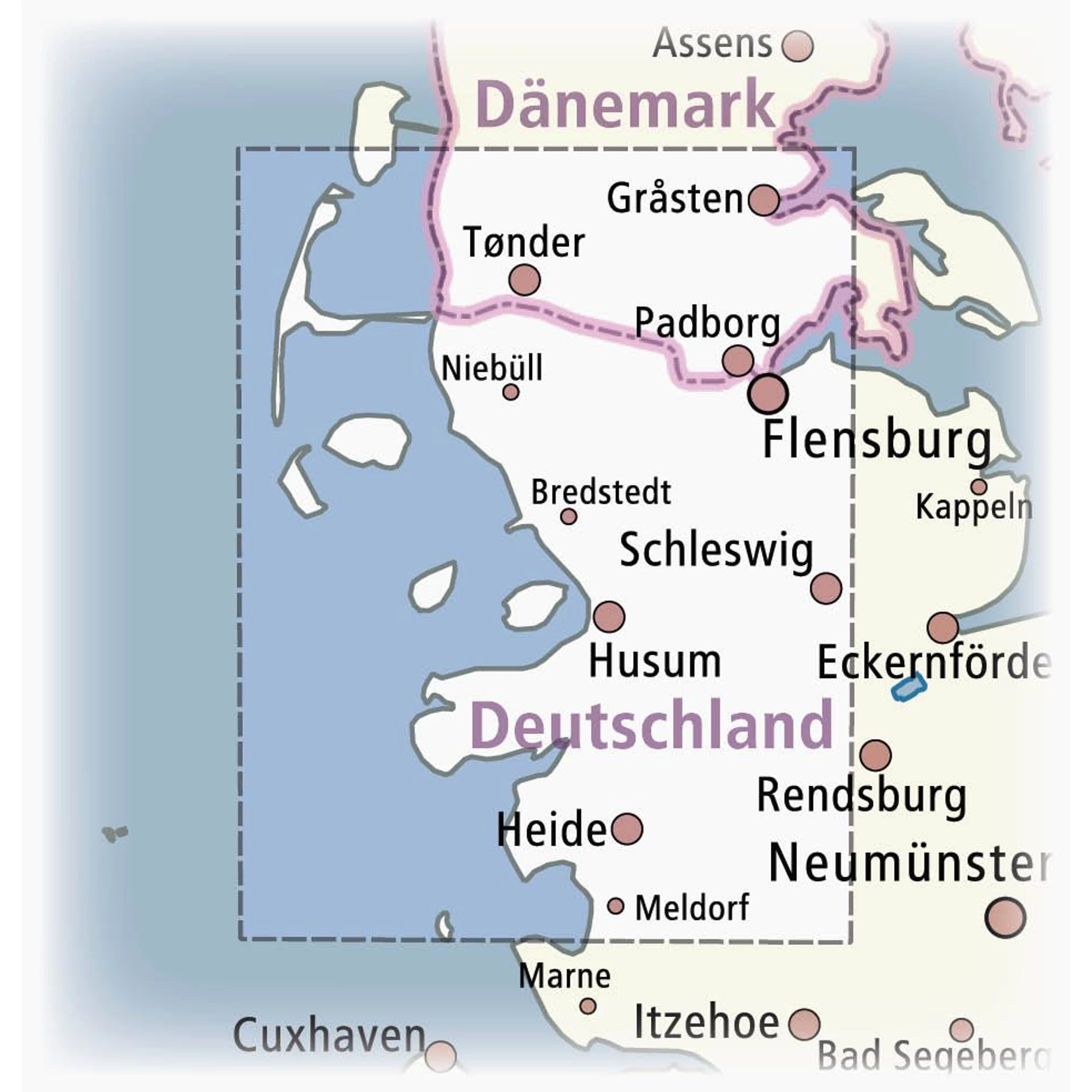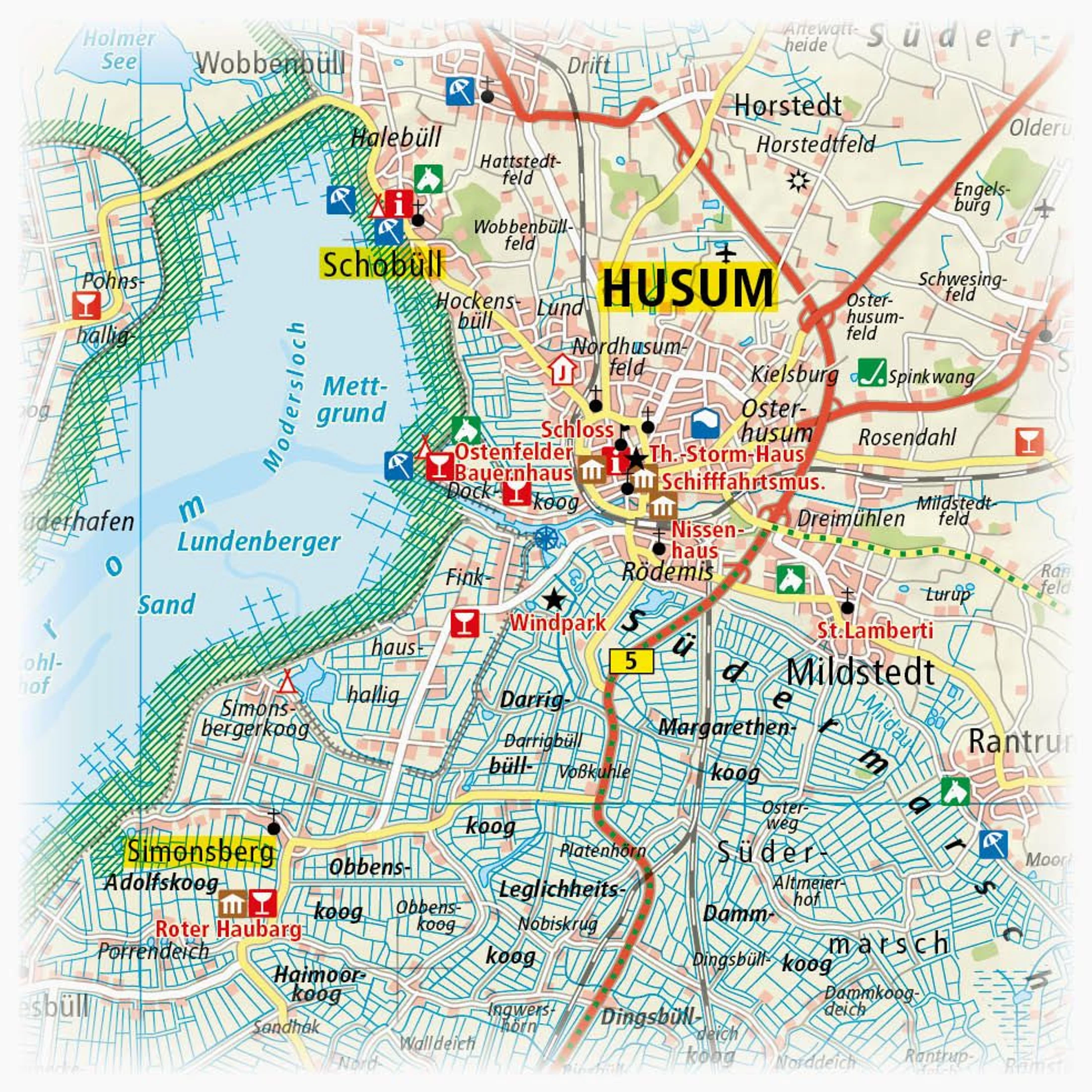 Az Észak-Frízföld, északi-tengeri partvidék kalandkalauz térképes része Heide-től Flensburgig, Eiderstedttől Syltig rengeteg élményt mutat be. Még a dán határvidék is látható. Lehetőség van hajókirándulásokra, a Watt-tengeren található természetvédelmi állomások látogatására, vezetett sétákkal, de olyan kulturális látnivalókra is, mint a husumi Theodor Storm Ház vagy a niebüll-i Emil Nolde Múzeum.