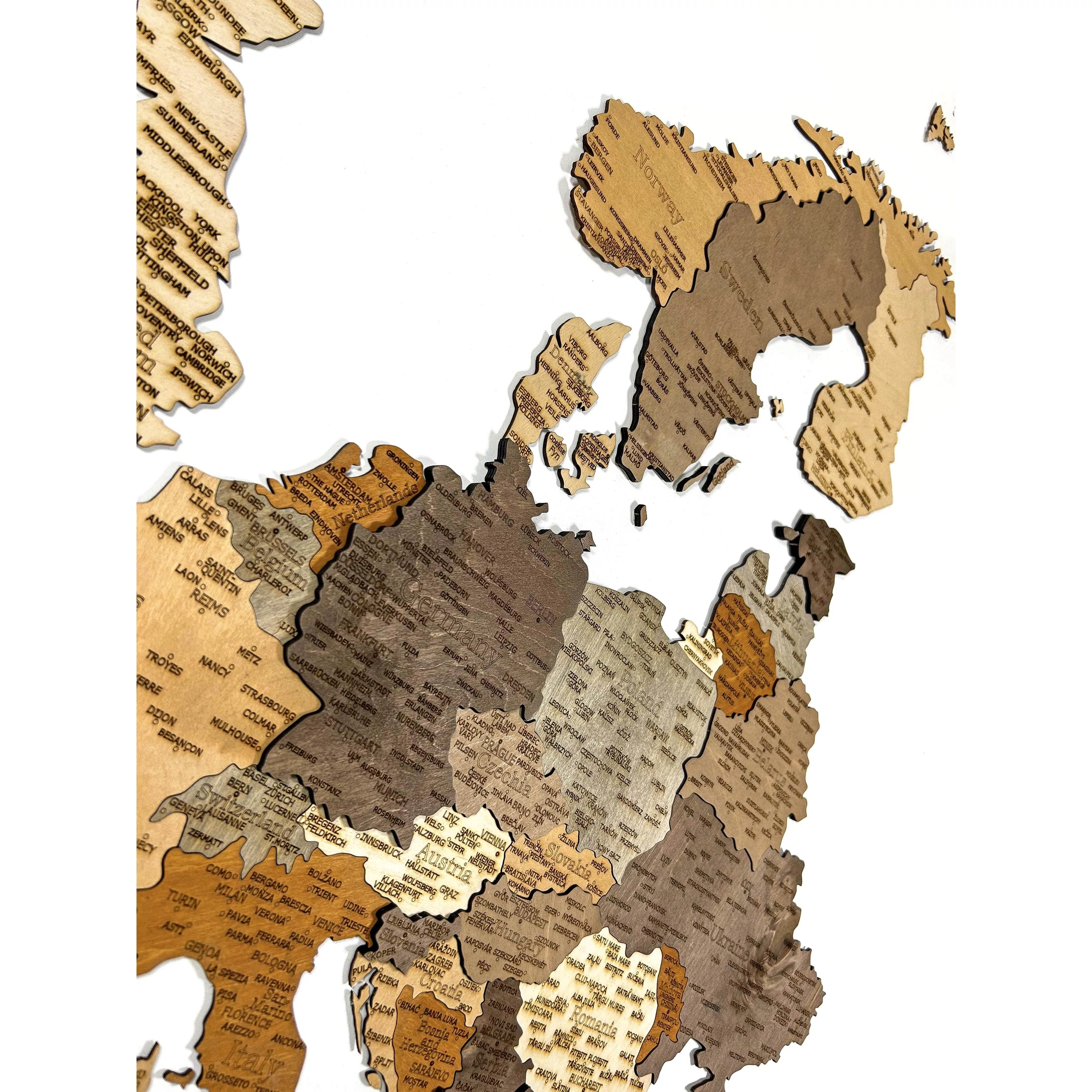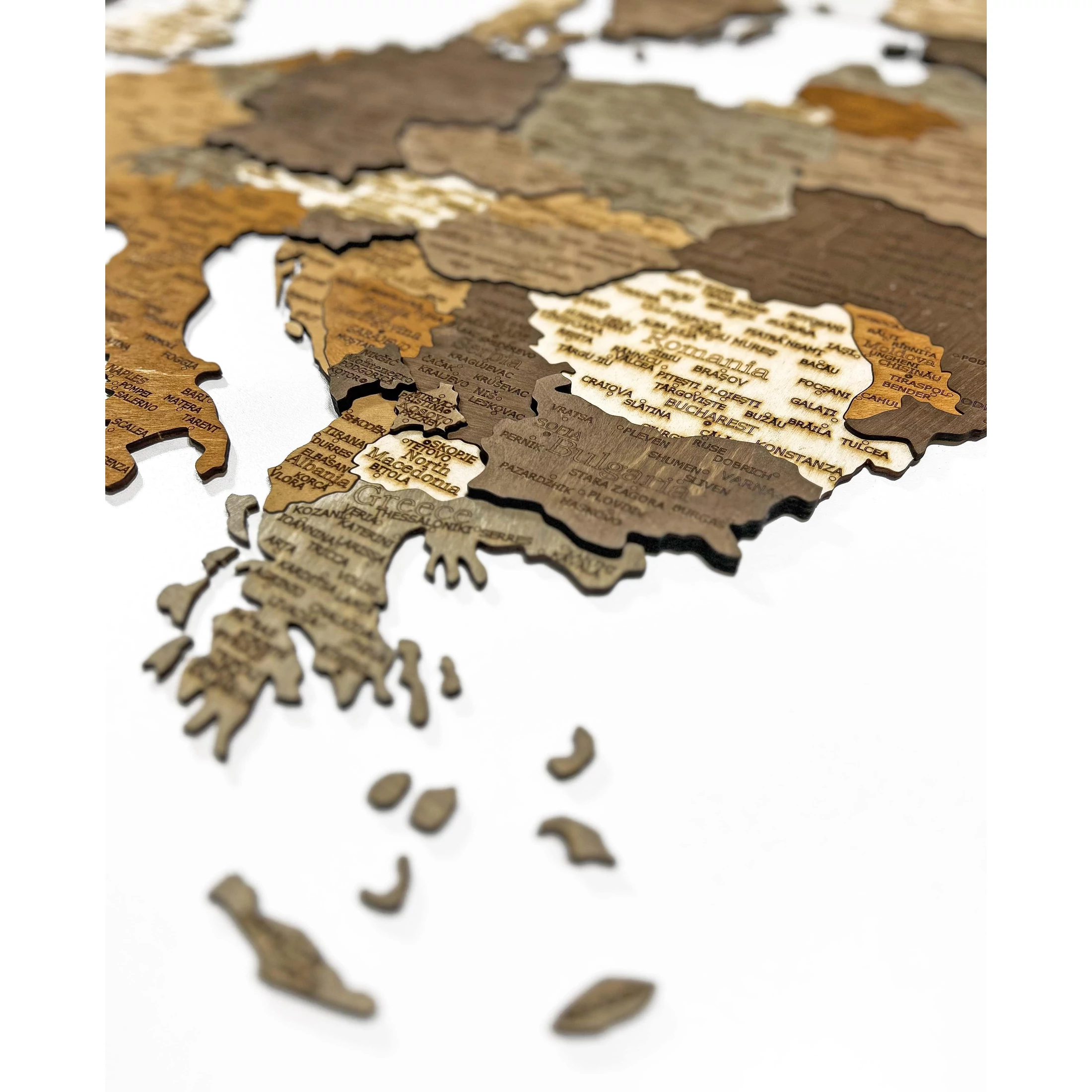 Ez az aprólékos kidolgozottságú, fából készült falitérkép nemcsak egyedülálló dekoráció a falra, hanem egy puzzle kirakós is egyben. Már a felrakása is szórakoztató, 2-3 órás kreatív időtöltés az egész család számára.