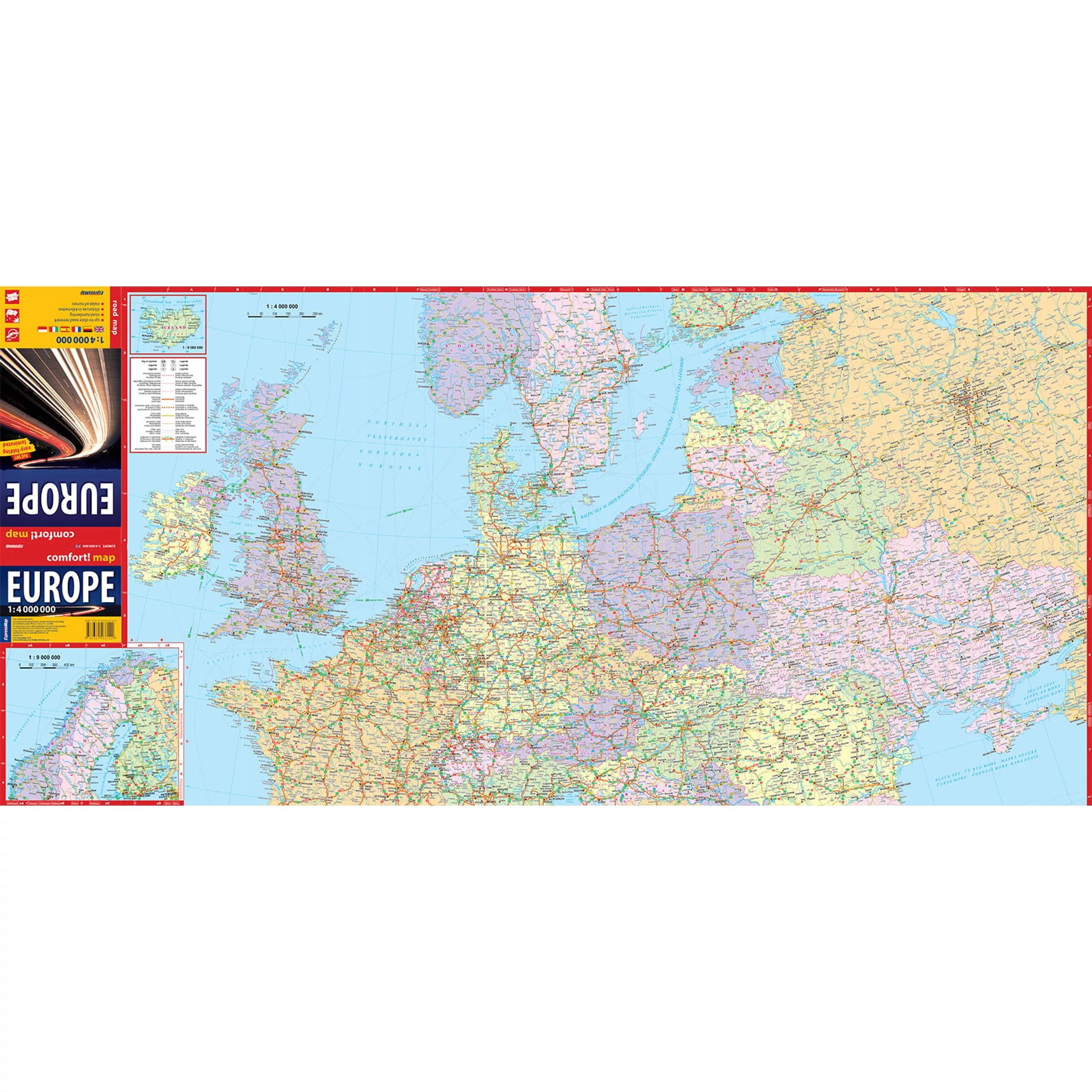 A kétoldalas laminált, kényelmesen hajtogatható Európa autós térképpel igazi élmény lesz az utazás a kontinensen.