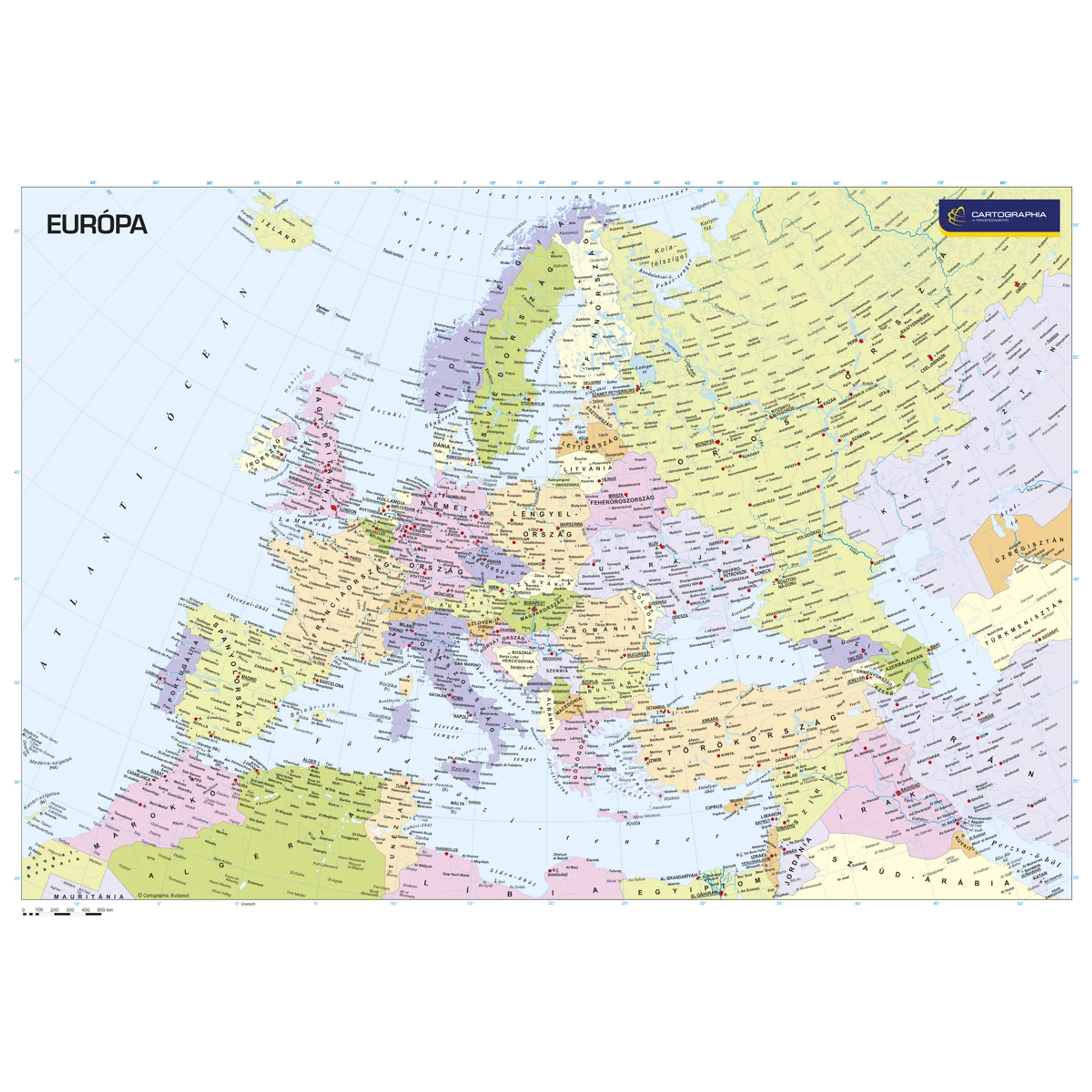 A Európa falitérkép választható méretben és kivitelben, rendelésre is.