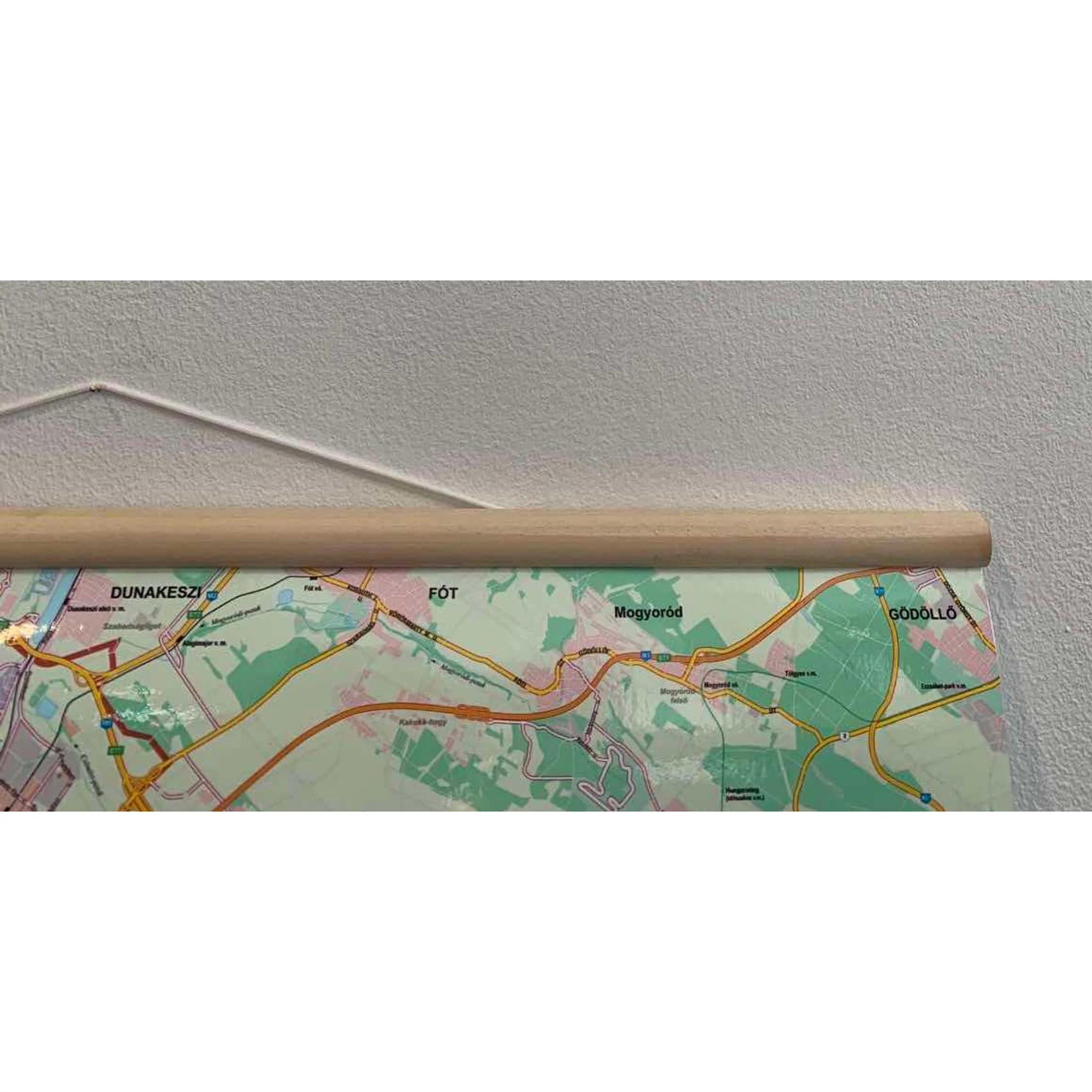 Fóliázott, lécezett kivitel - a térkép mindkét oldalon fényes, írható/mosható fóliával van ellátva, alul és felül natúr színű fa lécezéssel, akasztózsinórral.