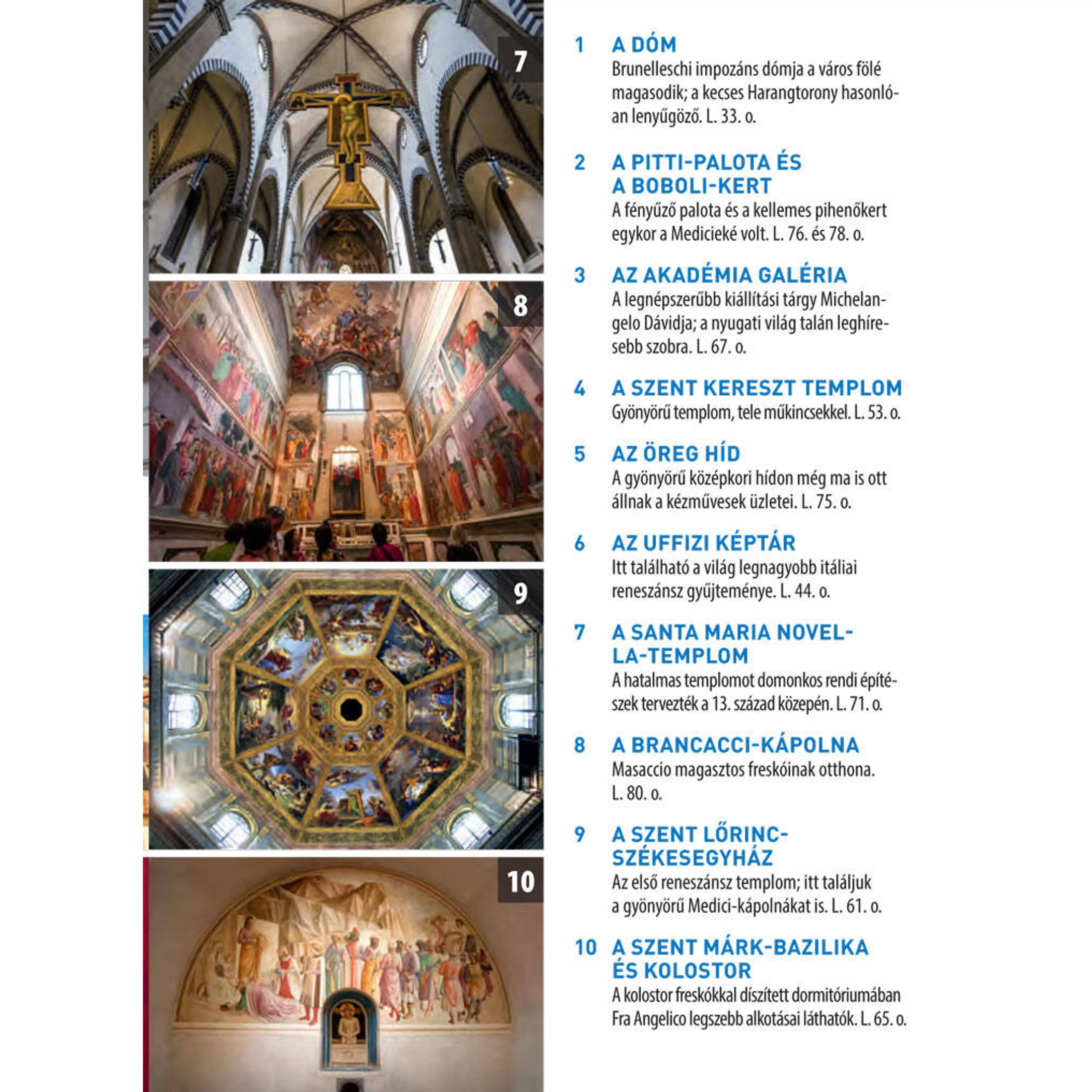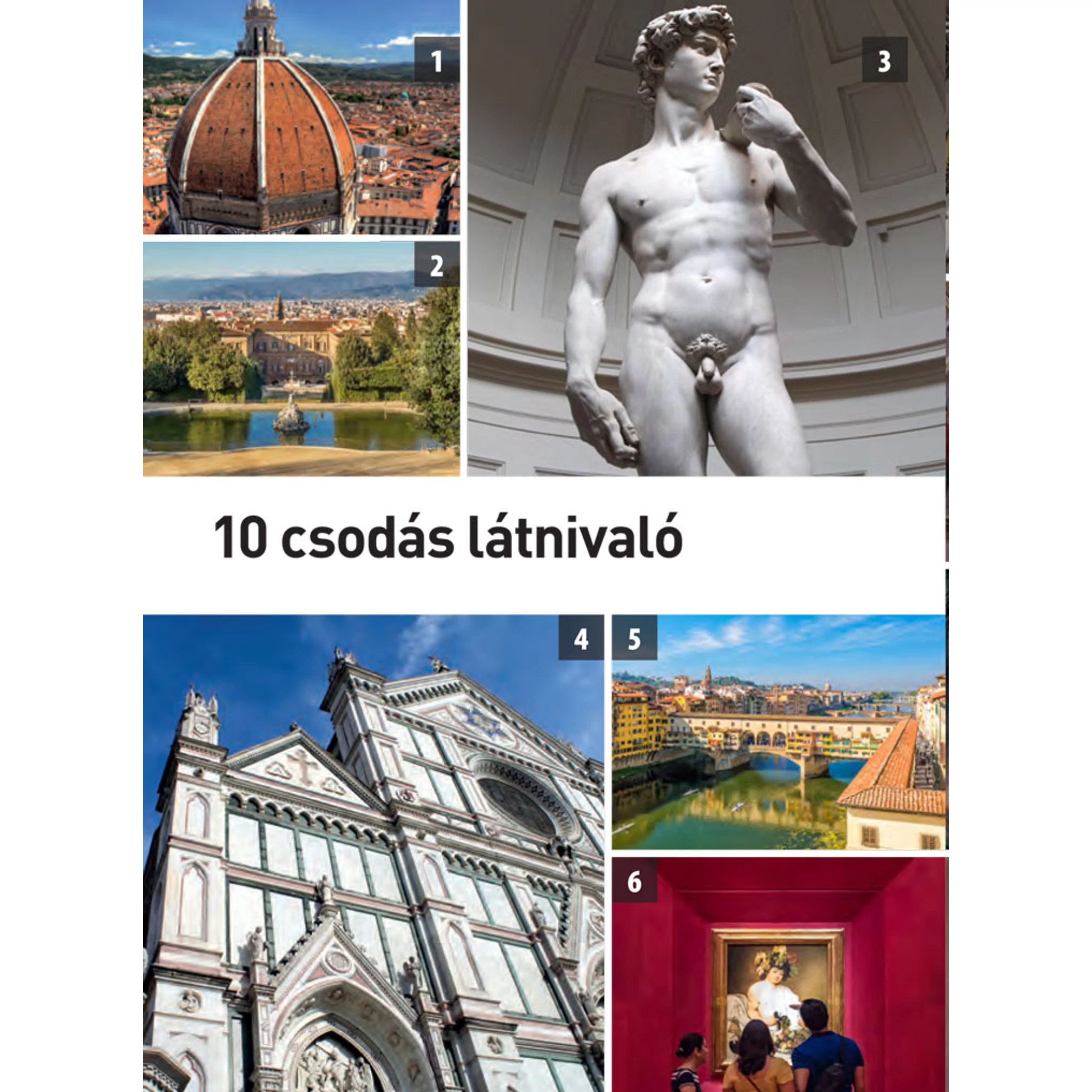 Barangoljon velünk Firenzében. Az Arno partján fekvő város látképéből már messziről kiemelkedik a Dóm híres kupolája, mely Firenze egyik jelképévé vált. A középkori sikátorokat ma fagylaltozók, ajándékboltok és pizzériák szegélyezik. Vasari legnépszerűbb építészeti alkotása, az Uffizi Képtár, mely ma a világ egyik leghíresebb és legfontosabb művészeti galériája. Az Akadémia Galériában található Michelangelo hét szobra, köztük a leghíresebb: a Dávid szobor. Érdemes átsétálni az Öreg hídon is, melyet apró boltok szegélyeznek. Látogassuk meg a monumentális Pitti-palotát, majd tegyünk egy sétát a Boboli kert ciprusfákkal szegélyezett sétányain. Ha a városnézés helyett inkább vásárolni szeretnénk, akkor is jó helyen járunk – minőségi divatcikkekből és bőrárukból széles választék vár ránk. Érdemes ellátogatni a város feletti dombokra is, ahol csodás kis falvak bújnak meg.