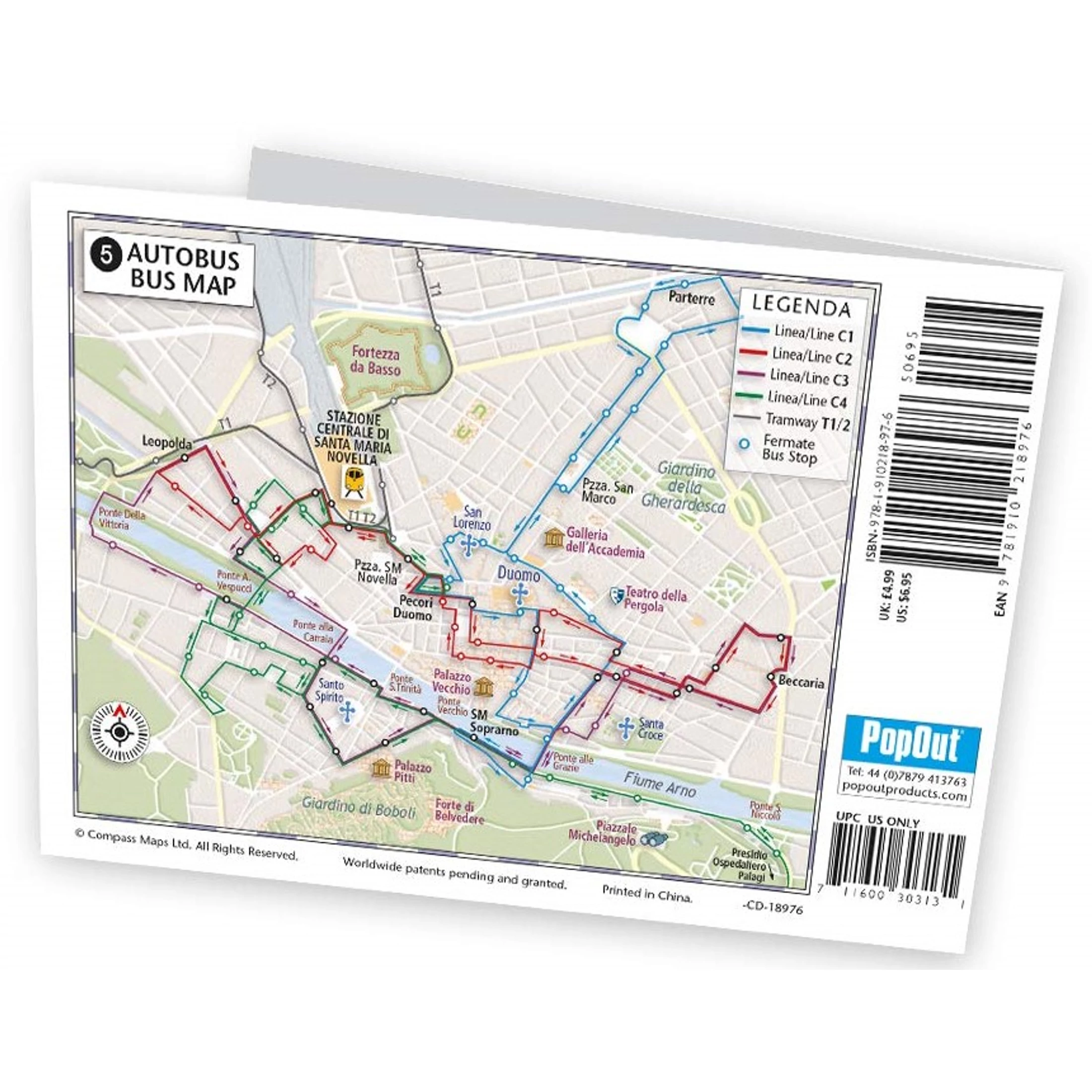 Két felugró térképet tartalmaz a városközpont részletes térképét, valamint Firenze áttekintő térképét, továbbá: buszjáratok térképei, helymeghatározó térkép és Pisa térképe.