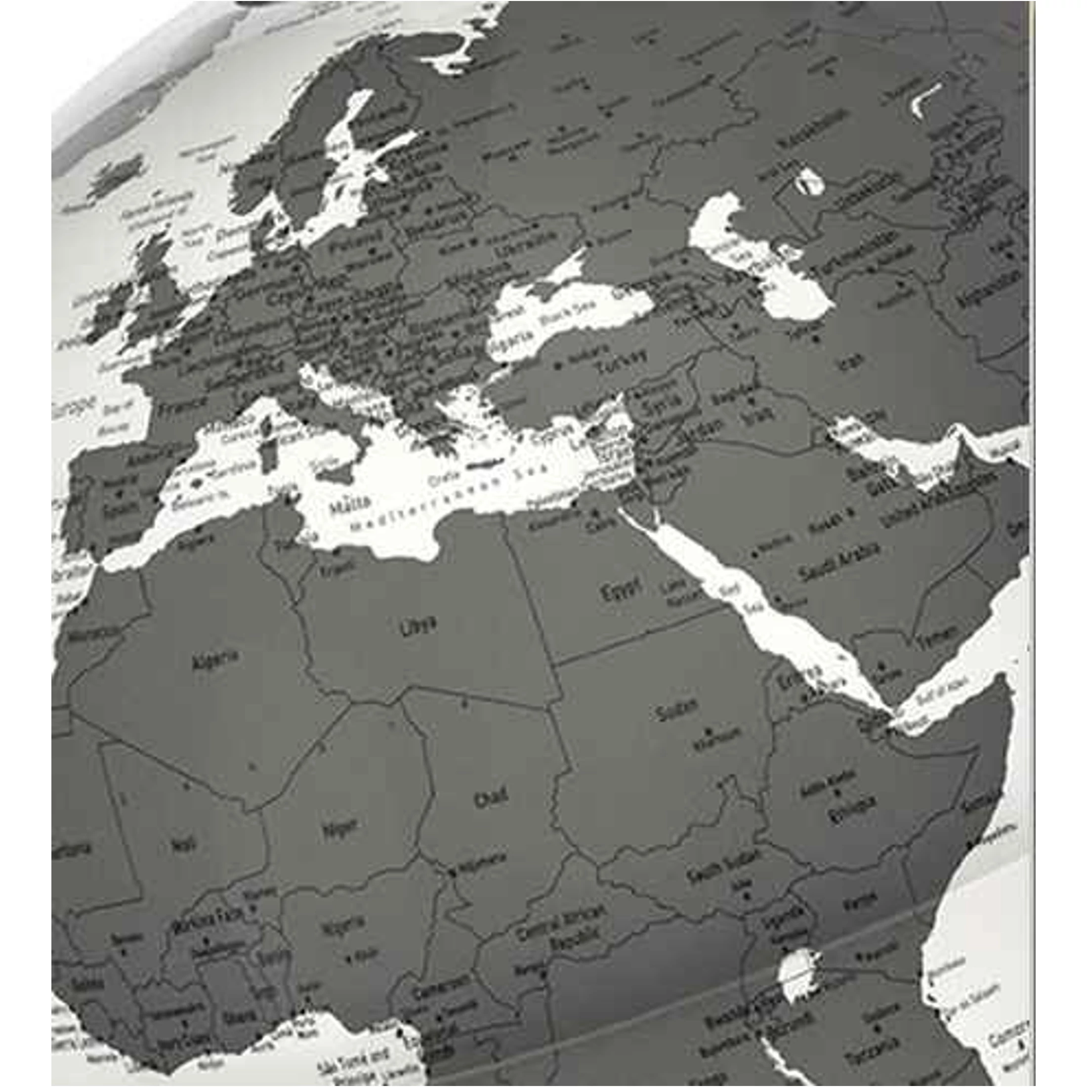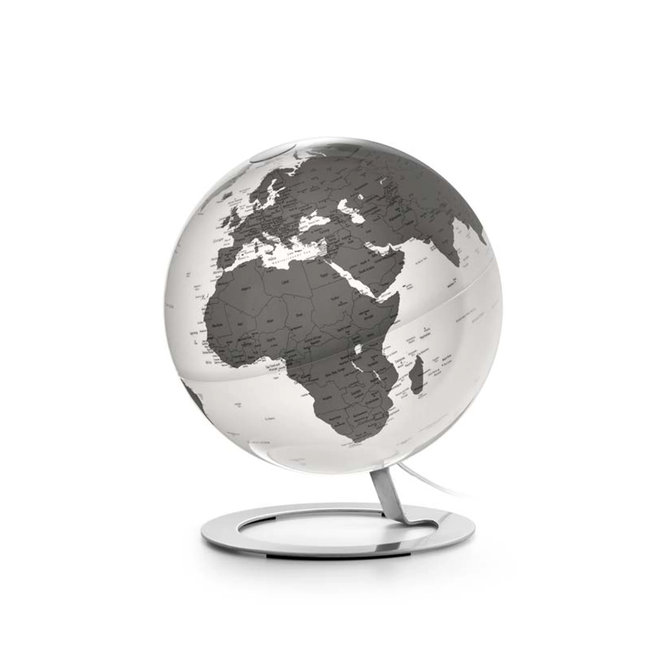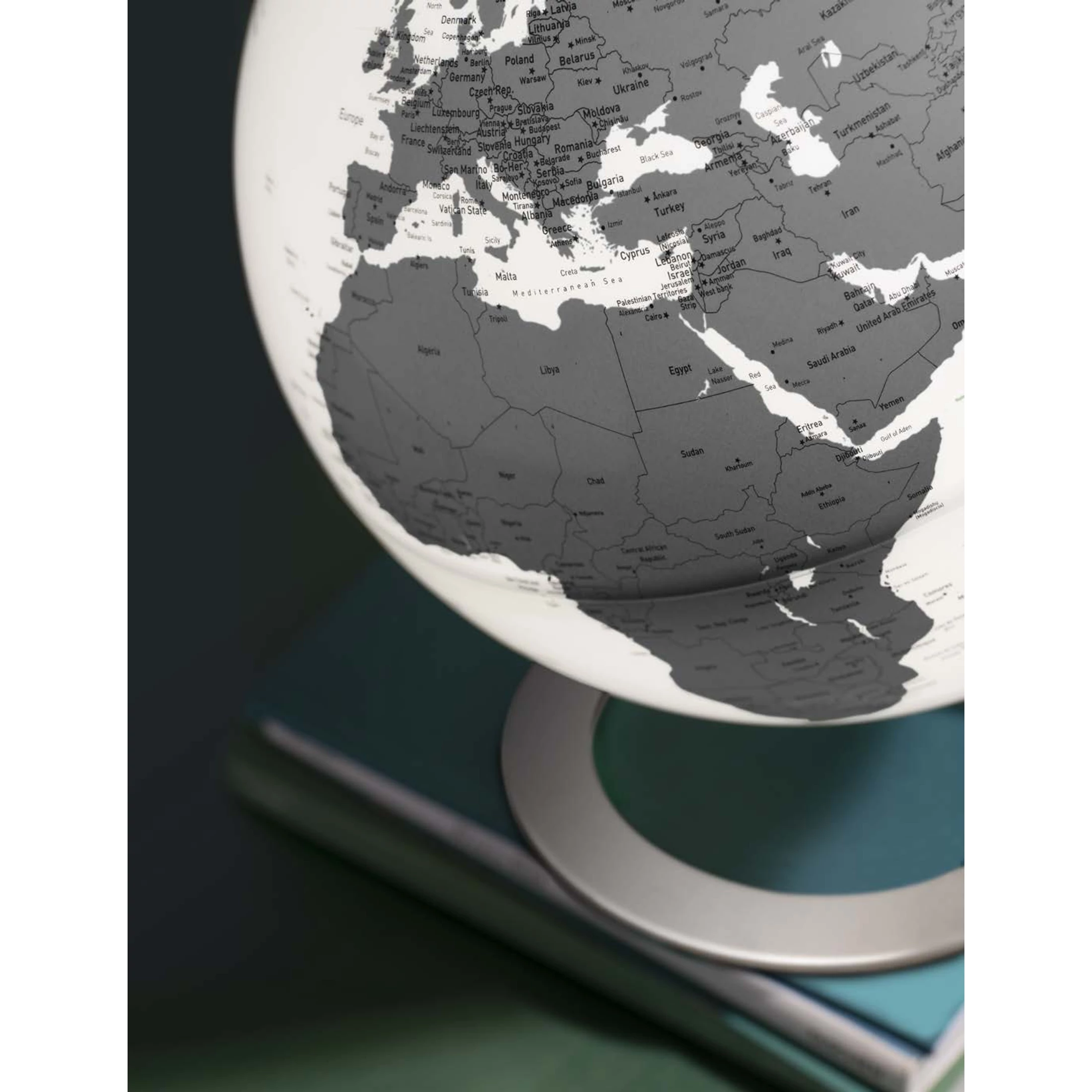 Az IGLOBE LIGHT CHARCOAL angol nyelvű, illusztrált politikai földgömb, minimalista dizájnnal.