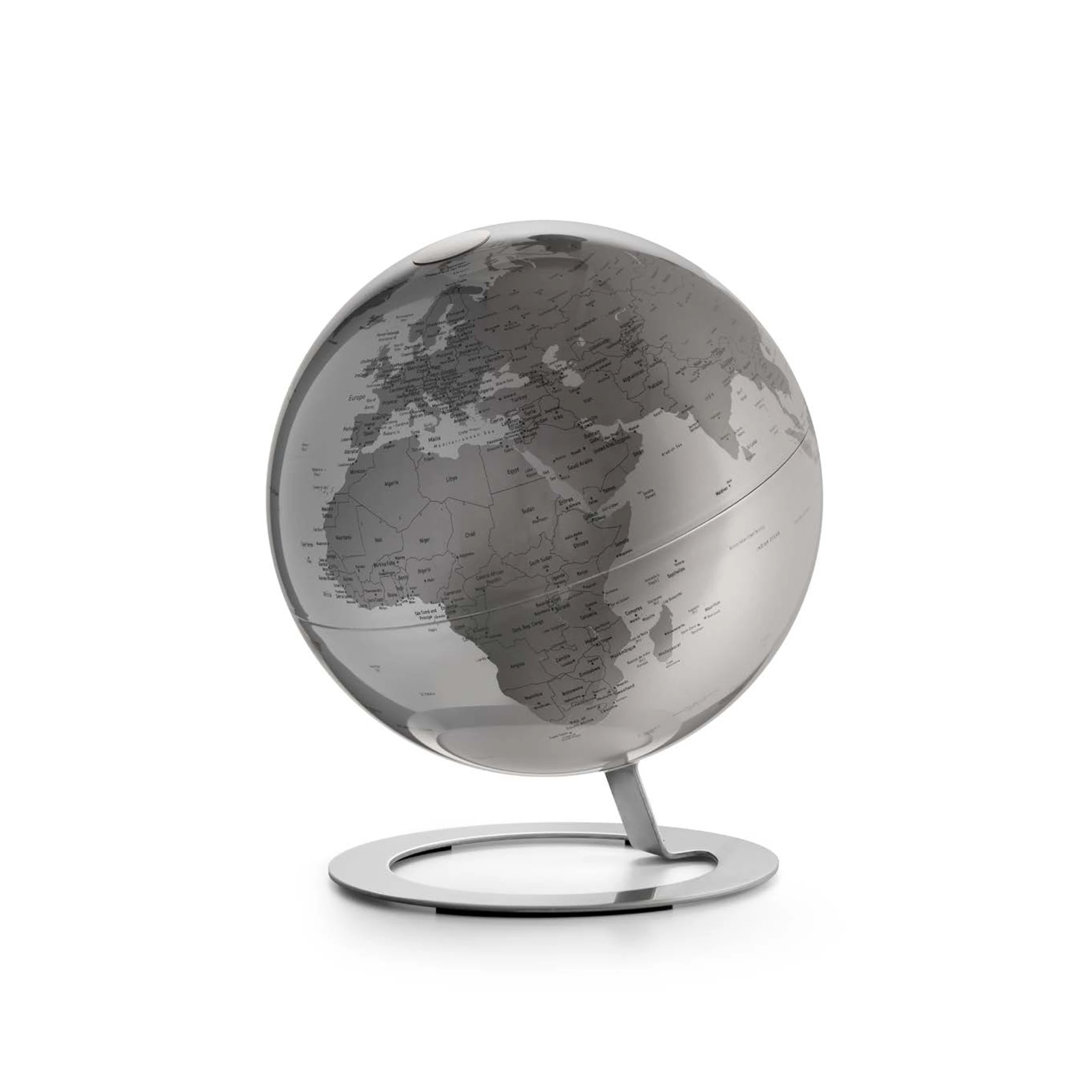 Szemet gyönyörködtető világtérkép, amelyet a fényes kontinensek és a fémes, sötétszínű óceánok közötti színkontraszt jellemez. Az IGLOBE SILVER angol nyelvű, illusztrált politikai földgömb, minimalista dizájnnal.