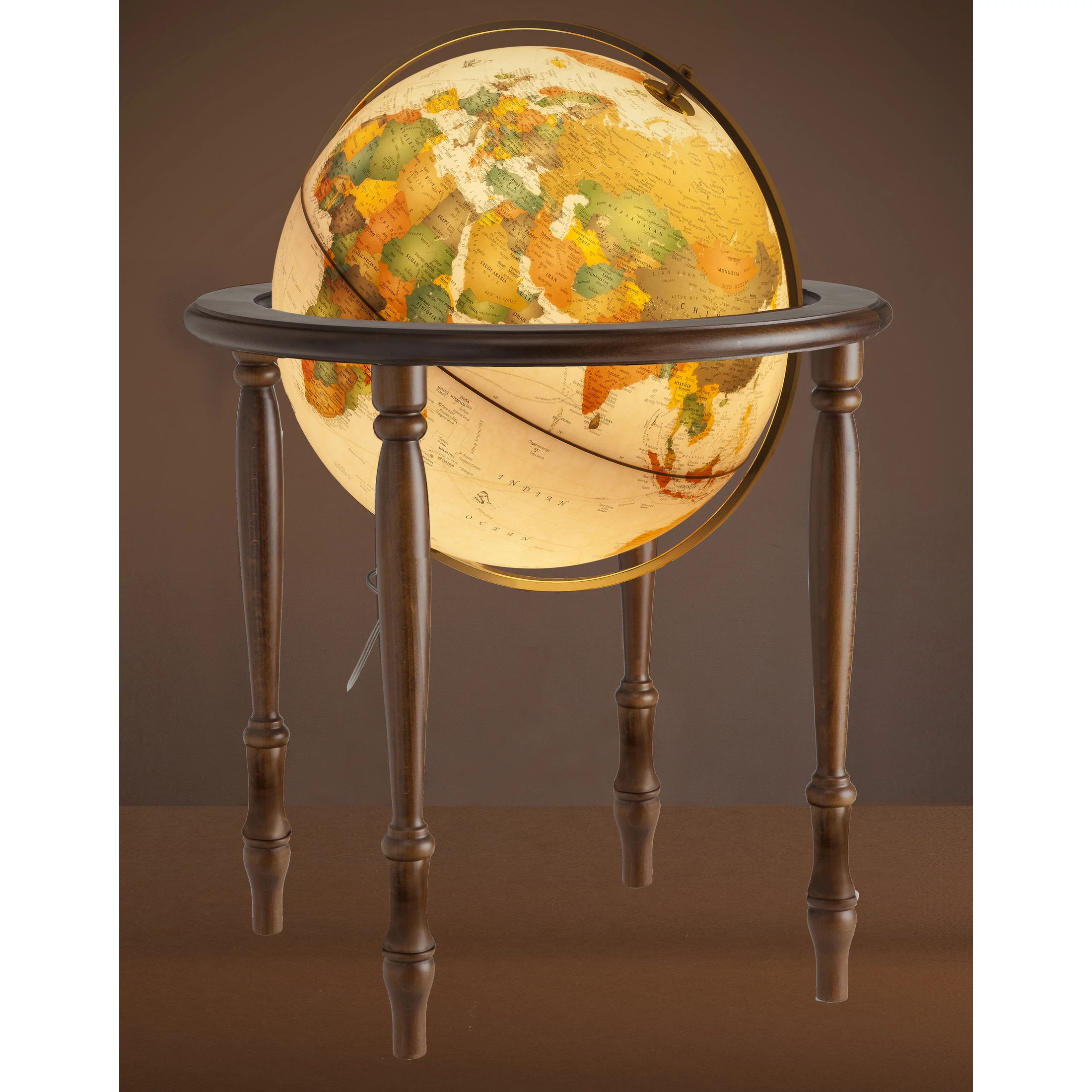 Az 50 cm-es Cinthia Blue világító domborzati földgömb állógömb, dió színezésű valódi tölgyfa talapzaton, körbefutó bronz hatású meridiánnal.