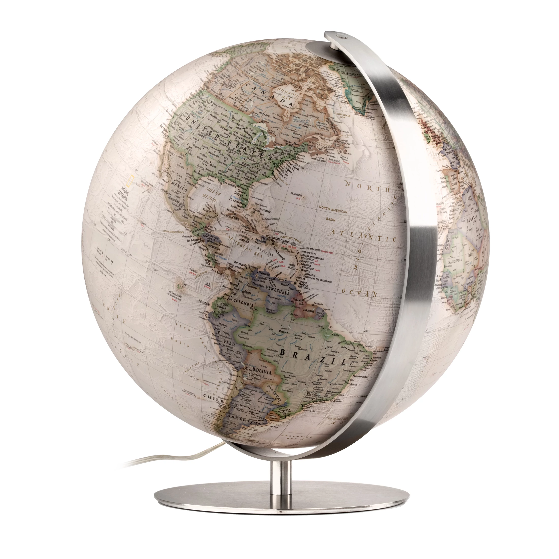 Az Extra Executive gömb kartográfiája antik megjelenésű, halványbarna óceánokkal. A politikai színezésű kontinenseken, valamennyi országhatár látható és több mint 2000 angol nyelvű elnevezés olvasható. Kivilágítva a térkép életre kel: az óceán mélyének és a hegyek mintázatának részletei egy kattintásra előtűnnek, még különlegesebbé téve a gömböt.