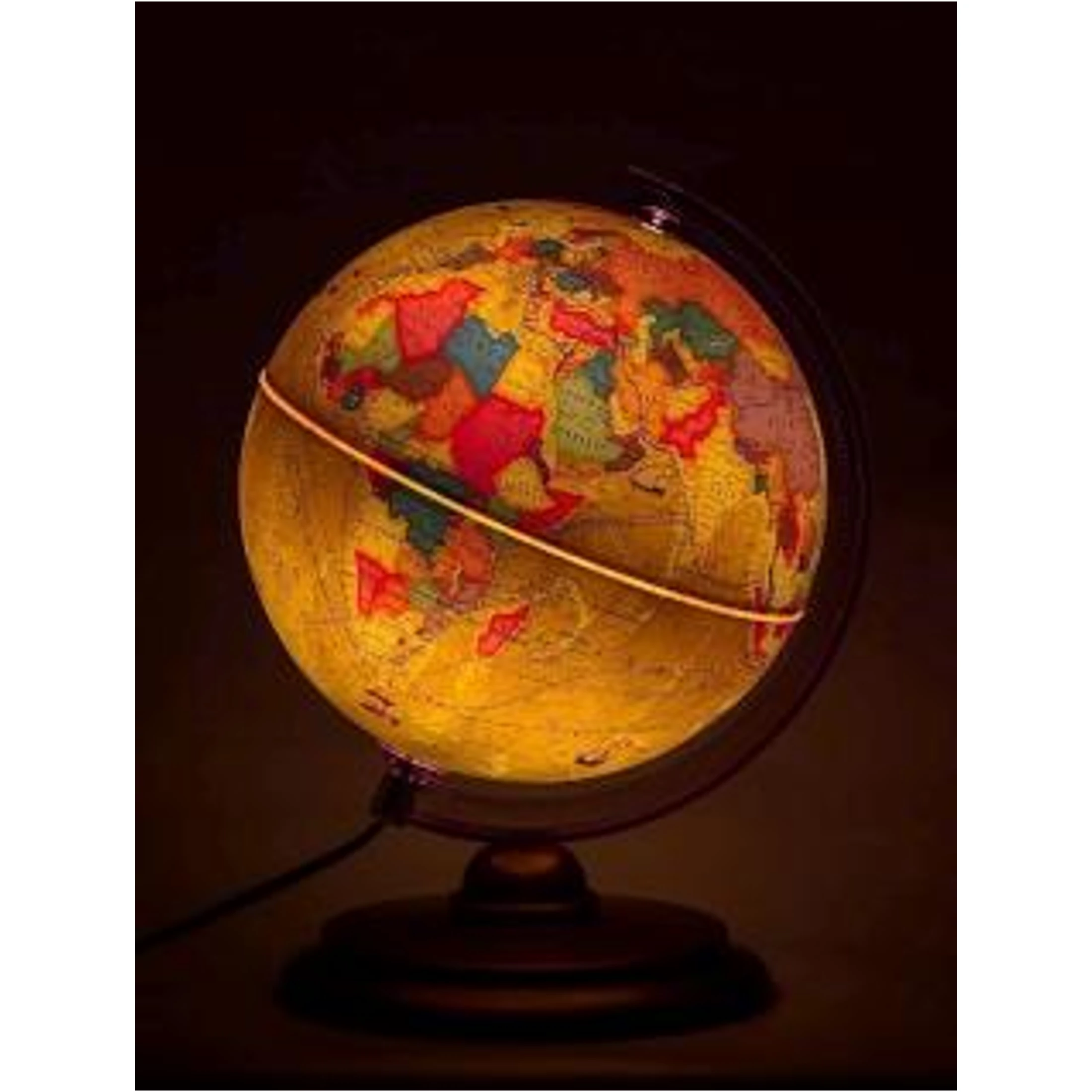 25 cm átmérőjű duó földgömb antik színezéssel. Alapállapotban domborzati, kivilágítva az aktuális politikai állapotoknak megfelelő országonkénti színezésű. Magyar nyelvű. Éjszakai fényként is nagyon hangulatos!