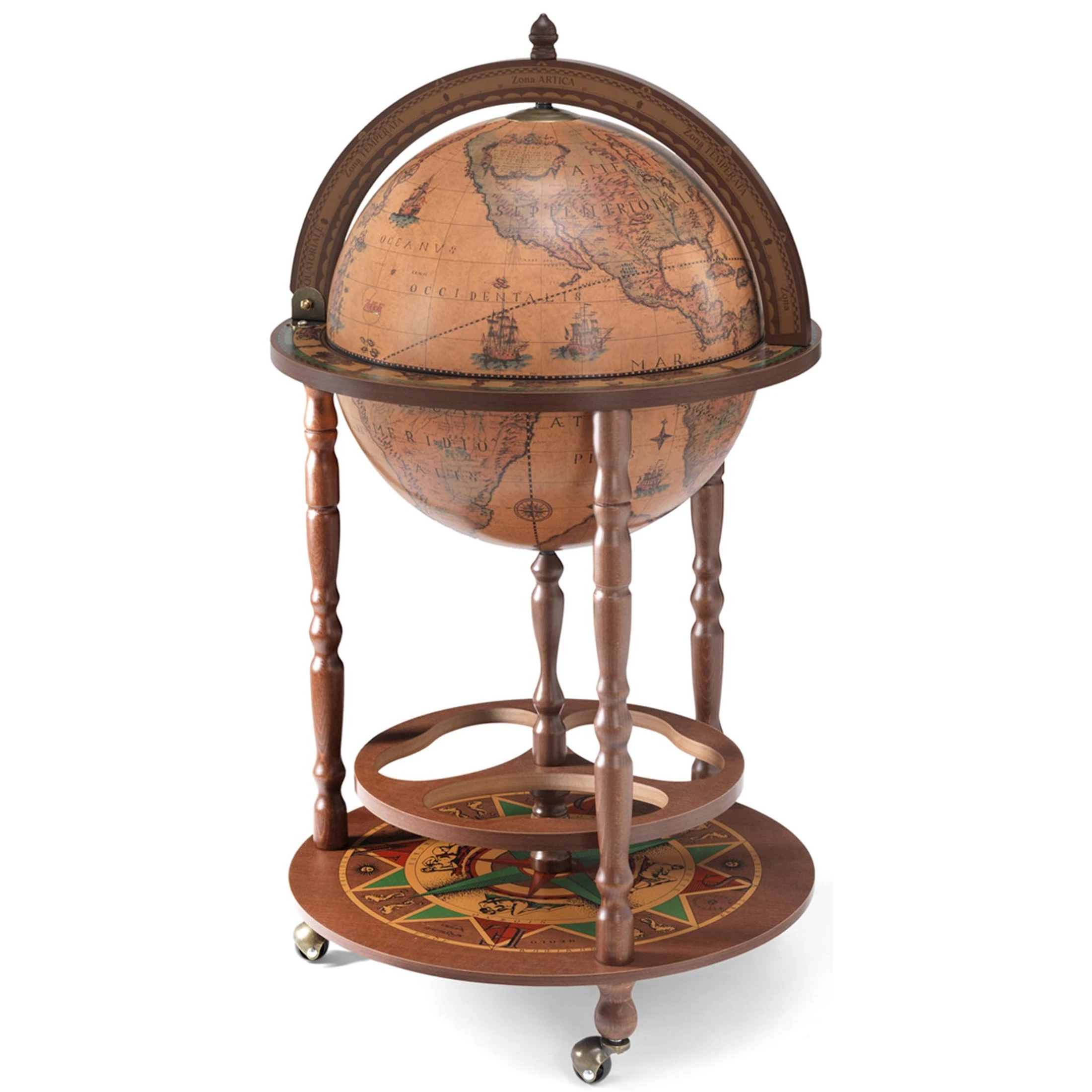 Ez az aprólékosan részletezett, 16. századi vintage földgömb replika, gesztenye színű lábakkal és félmeridiánnal rendelkezik. A bárgömb felidézi a klasszikus bájt és a régi világ hangulatát.