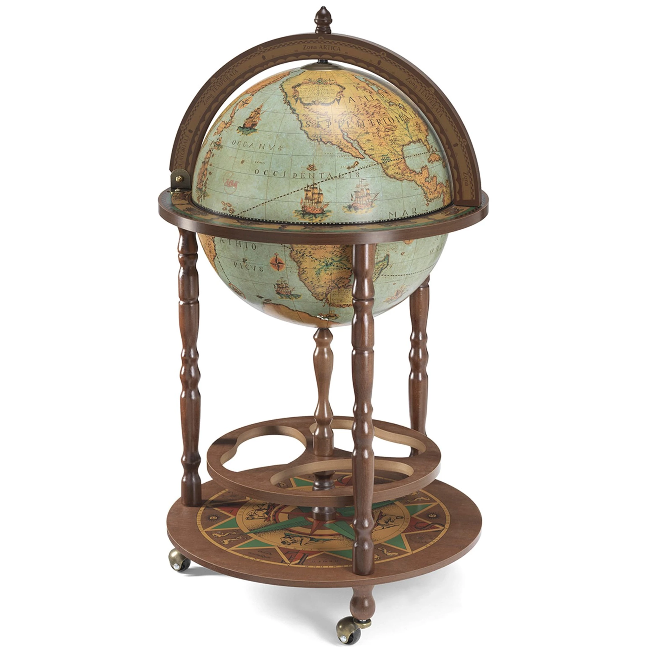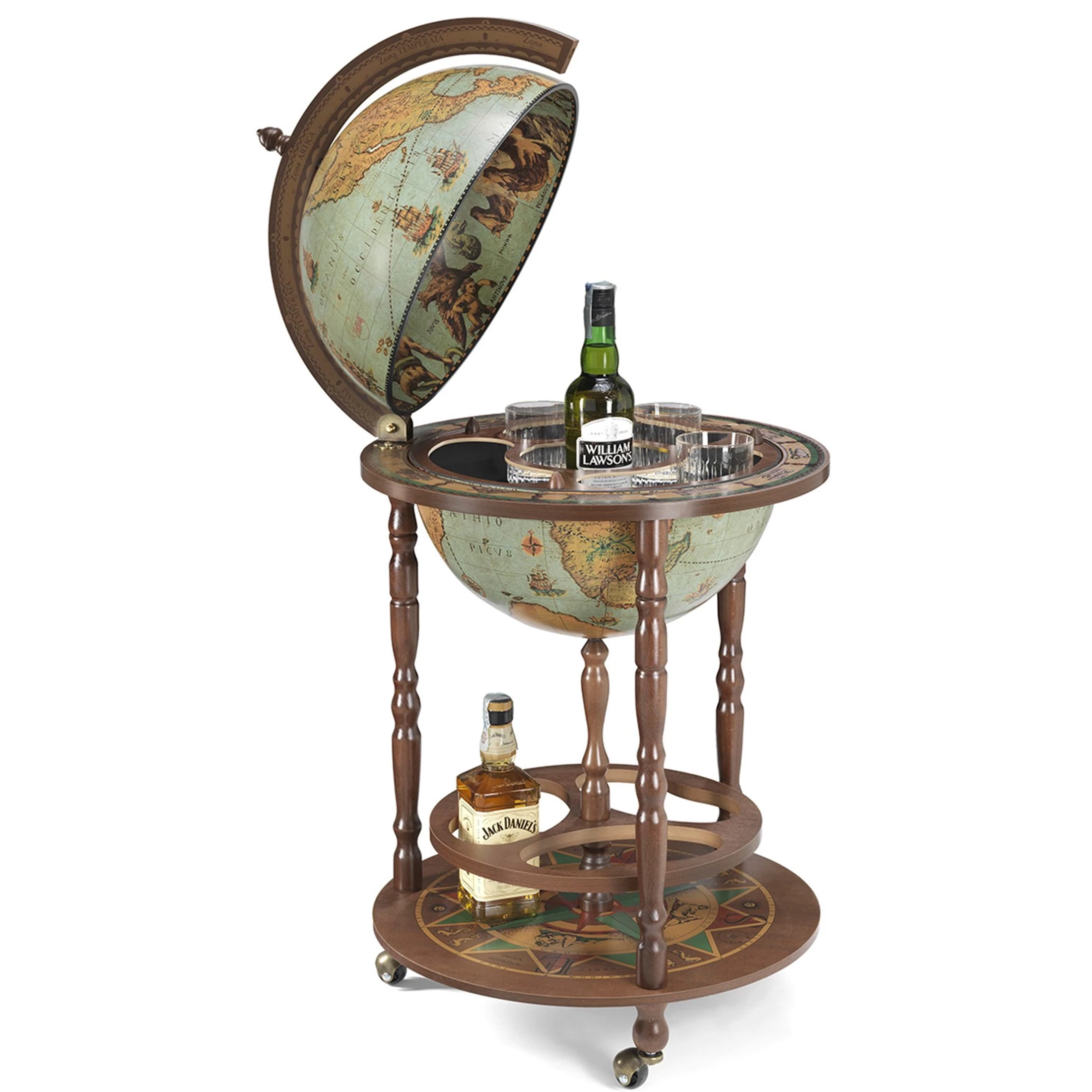 Ez a népszerű, klasszikus, vintage, padlóra állítható bárgömbszekrény egy valódi, 16. századi földgömb térképmásolattal rendelkezik, mint a Classic Collection összes világgömbje és bárgömbje.