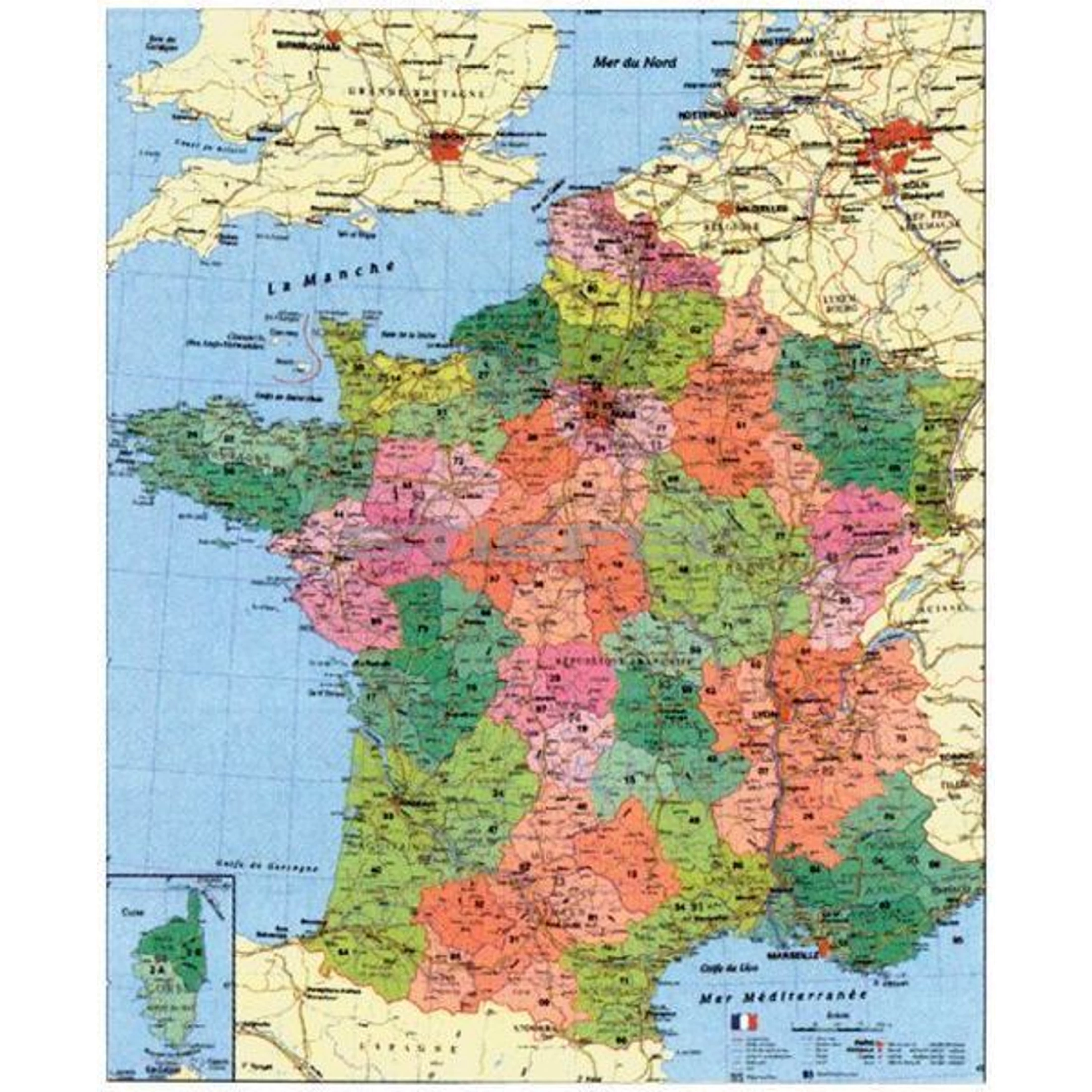 Franciaország postai irányítószámos térképe 100 x 140, fémléces - Stiefel