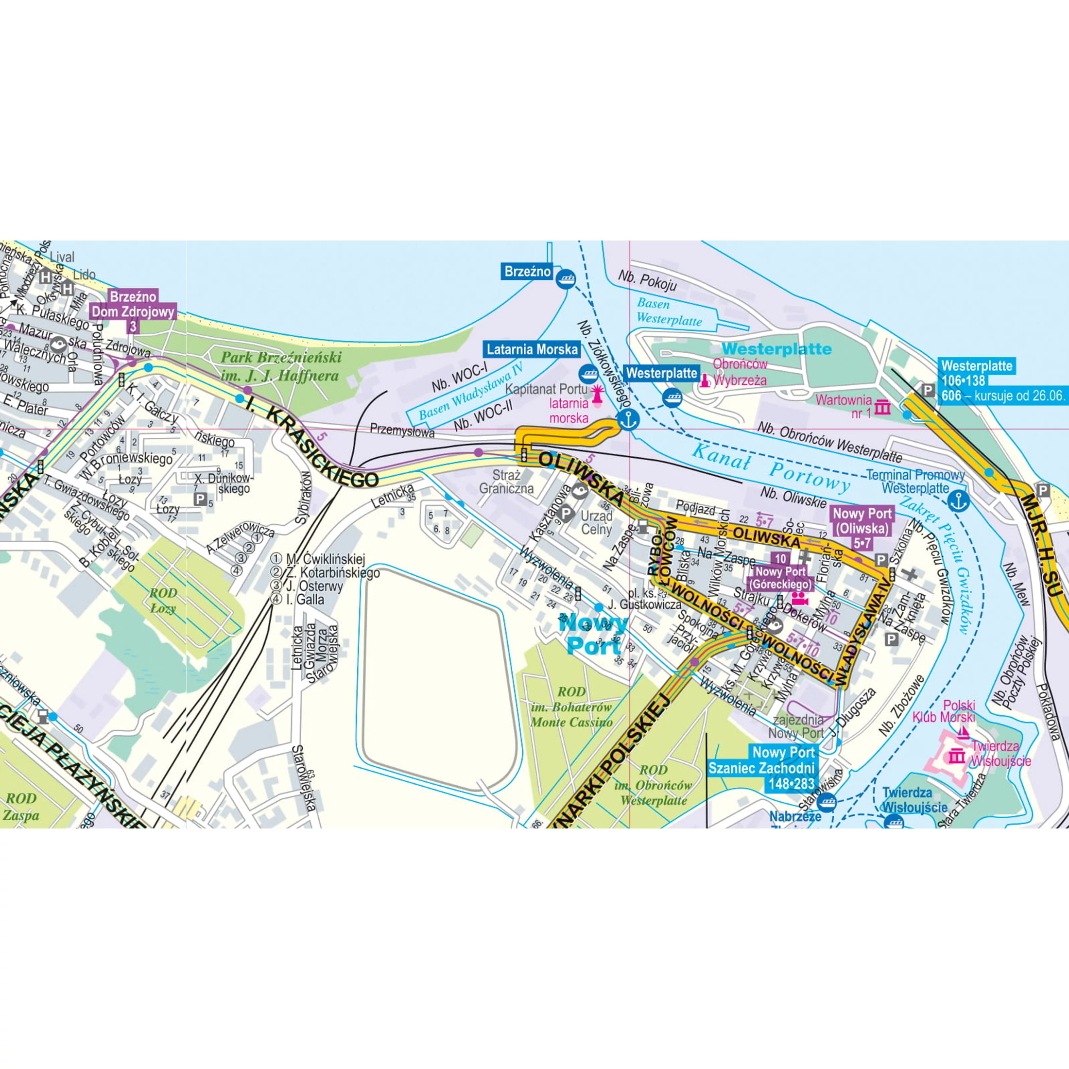 • Gdańsk, Gdynia és Sopot központjának részletes térképe 1:13 000 méretarányban,
