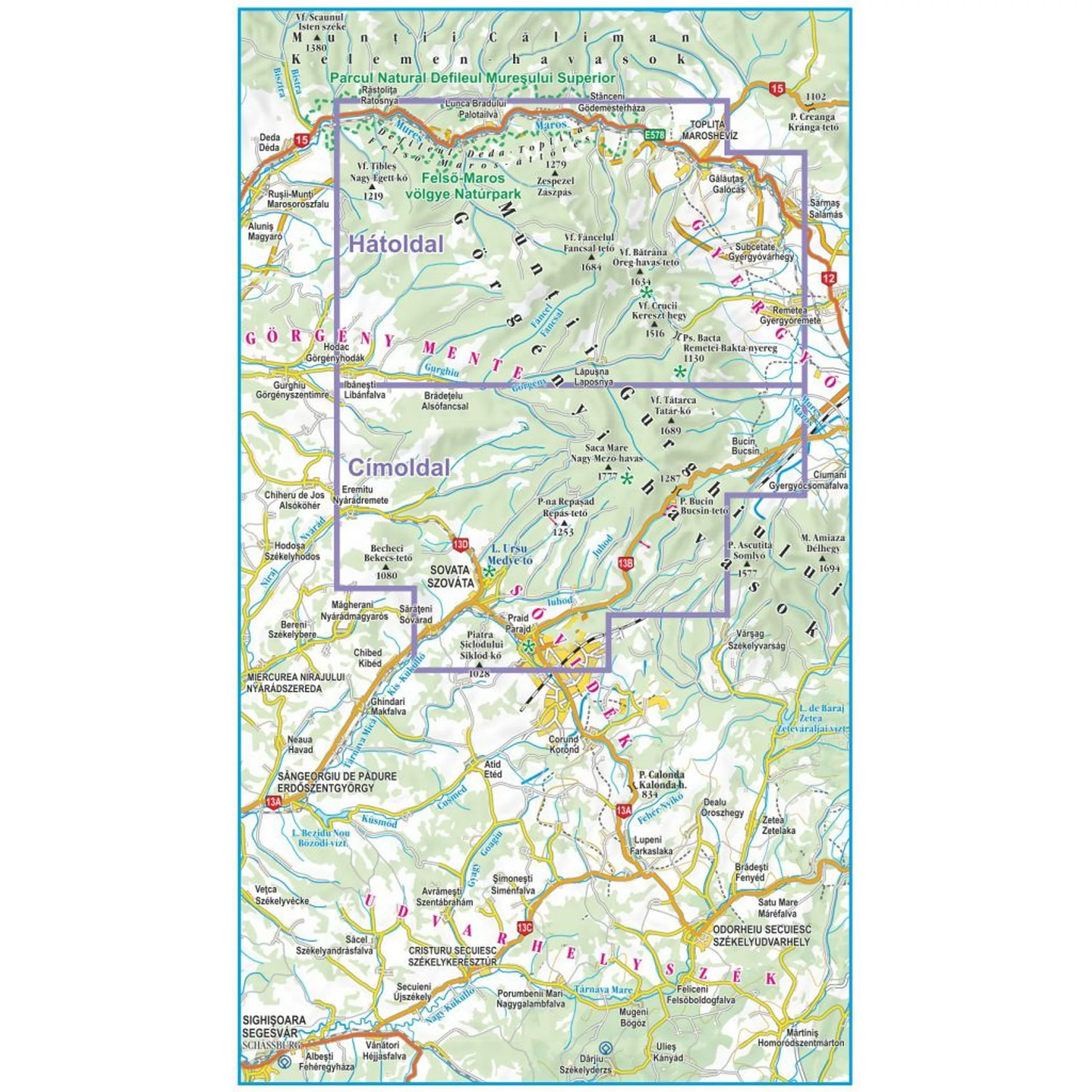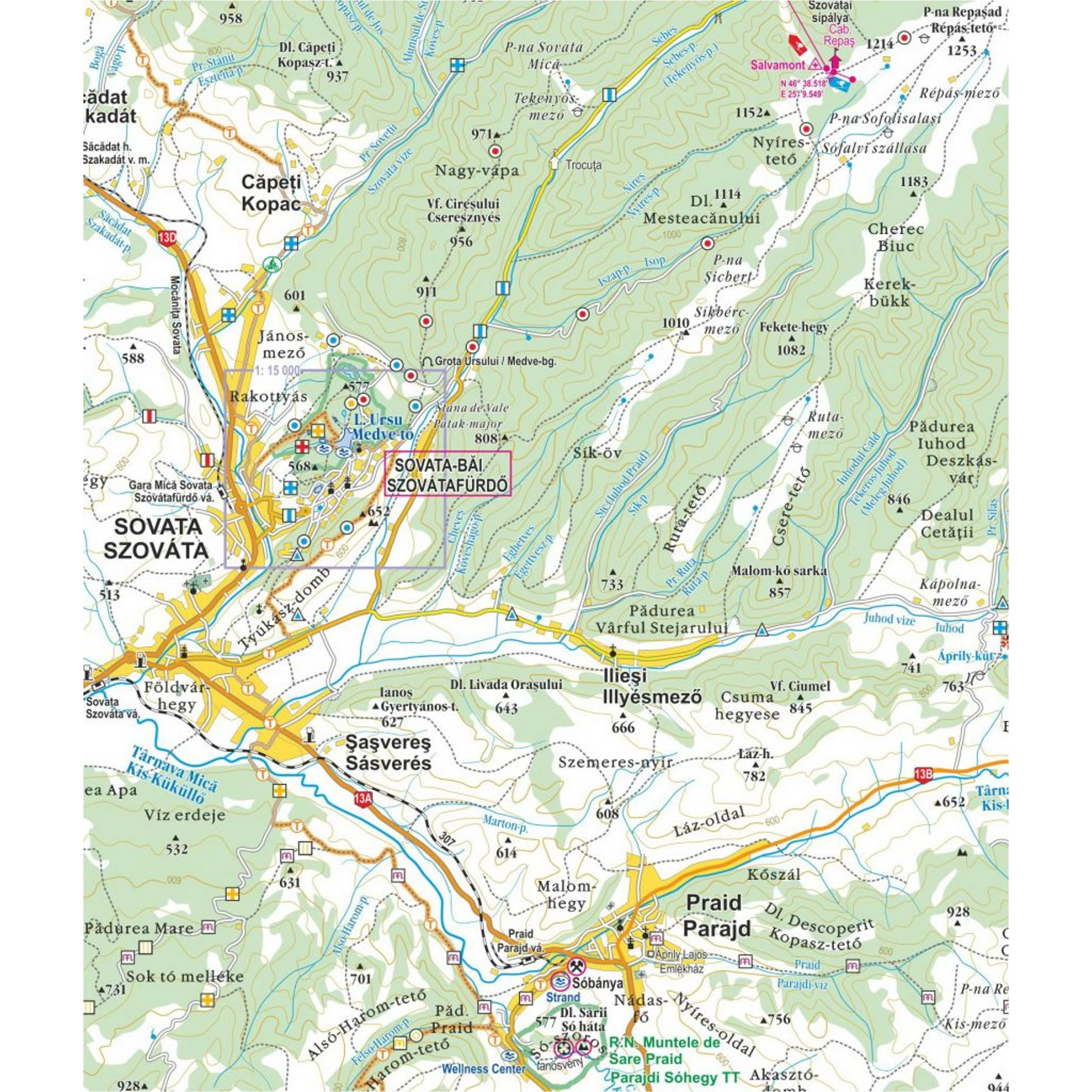 Román, magyar és angol nyelvű ismertetővel, a túraútvonalak leírásával, Szovátafürdő térképével. Földrajzi fokhálózat ábrázolása GPS-hez.