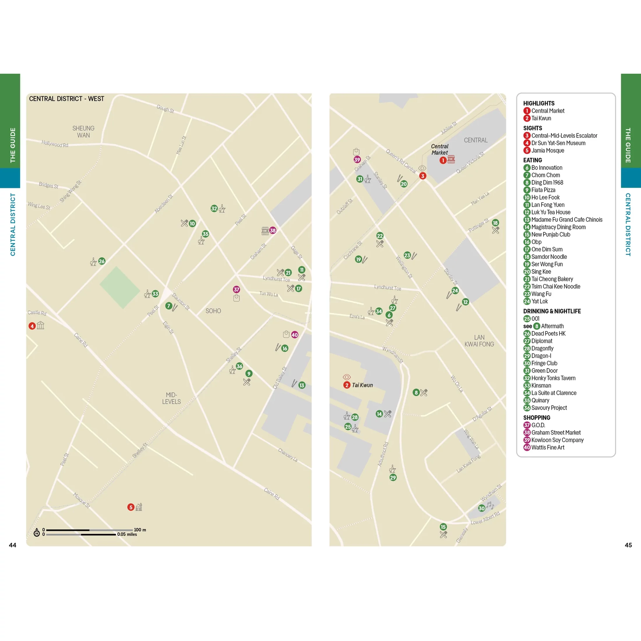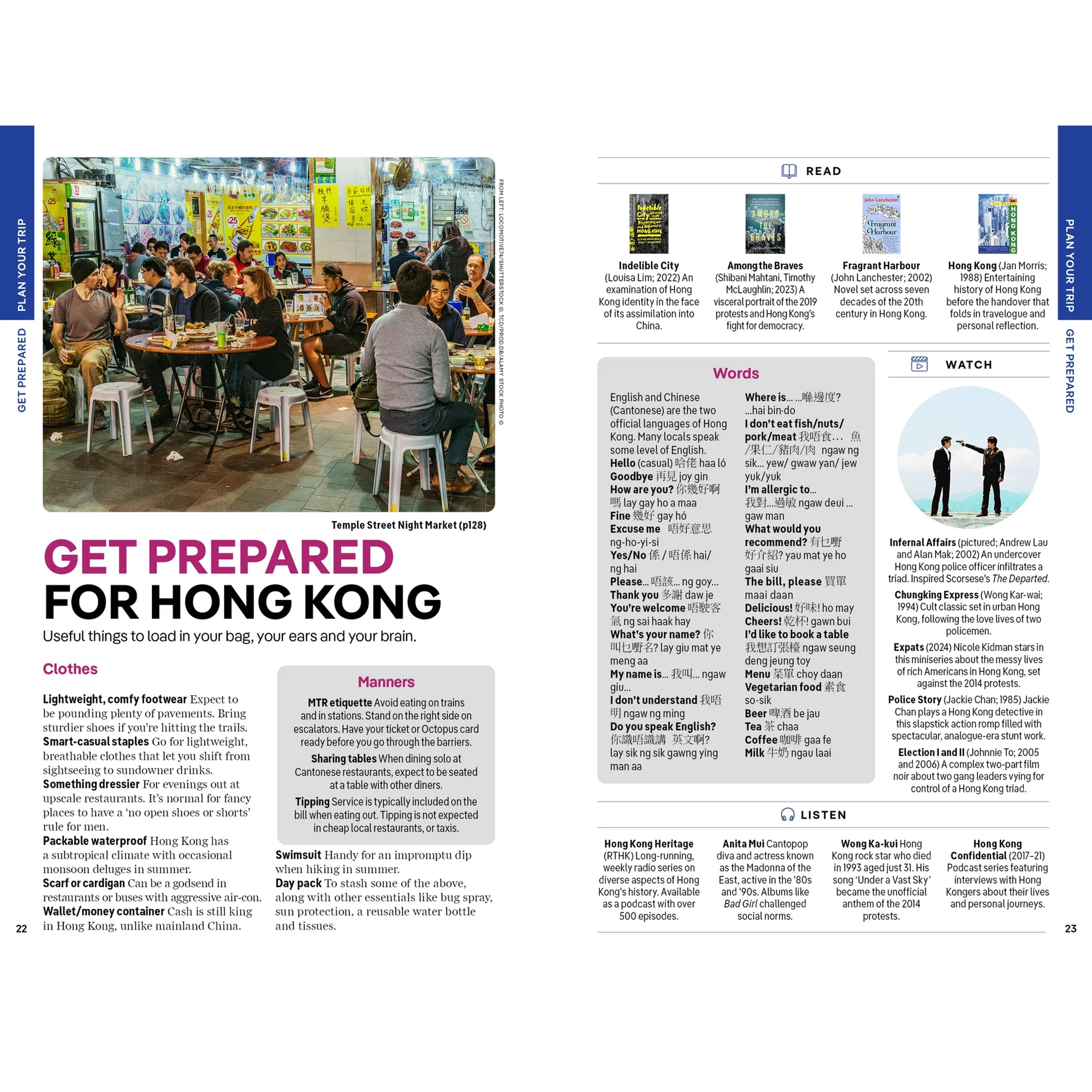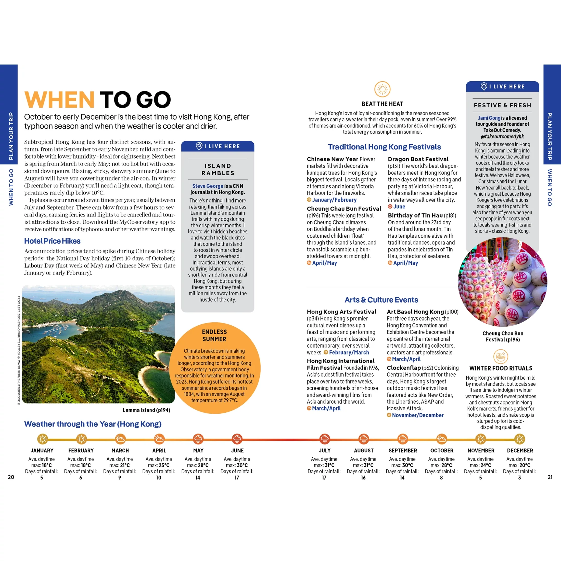 Covers: Central District; The Peak & Northwest Hong Kong Island; Wan Chai & Northeast Hong Kong Island; Aberdeen & South Hong Kong Island; Kowloon; Macau plus day trips to Tuen Mun; Yuen Long; Mai Po Wetlands; Fanling & Sheung Shui; Sha Tau Kok; Sai Kung; Hong Kong Geopark; Tai Po; Sha Tin; Tung Ping Chau; Clearwater Bay; Tsuen Wan; Tai Mo Shan; Tai O; Mui Wo & Discovery Bay; Hong Kong Disneyland; Big Buddha & Po Lin Monastery; Lamma; Cheung Chau