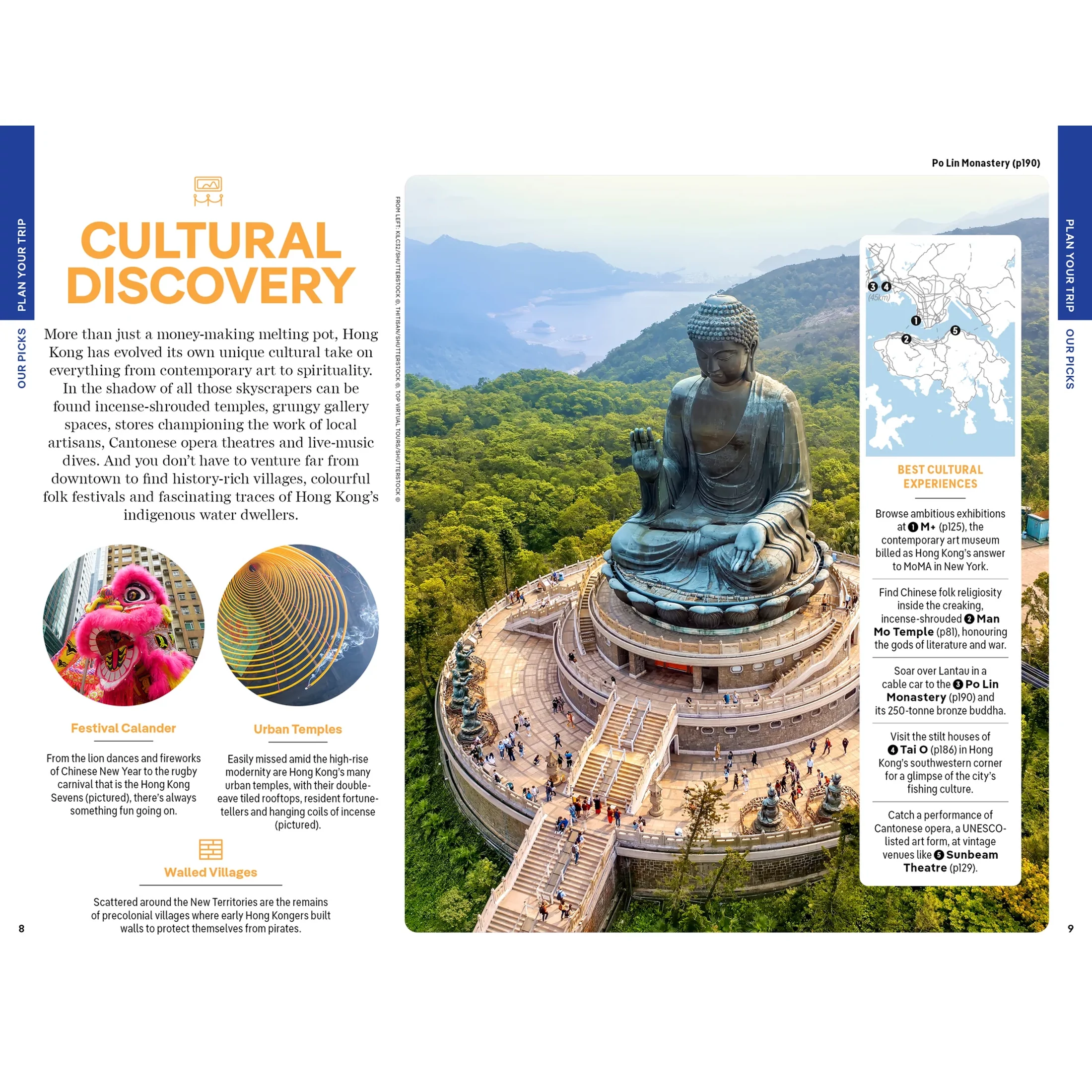 Discover Hong Kong's most popular experiences and best kept secrets - neighbourhood by neighbourhood - from soaring over Lantau in a cable car to the Po Lin Monastery; to hitting up historic Temple Street Night Market in search of snacks, souvenirs and street life; and making a pilgrimage to forest-clad Victoria Peak for unbeatable city views.