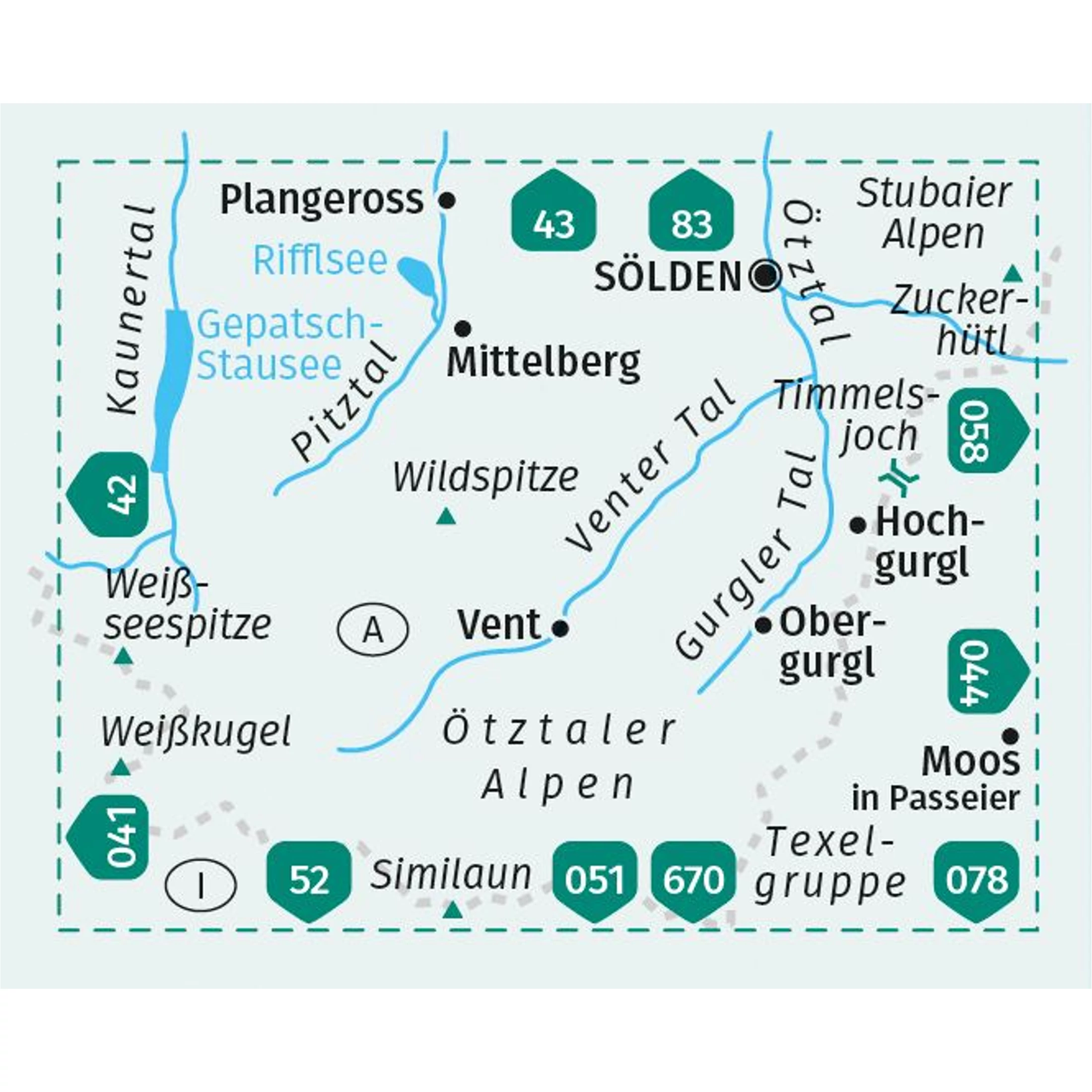 • Régió: Tirol, Dél-Tirol – Kaunertal, Ötztal, Pitztal, Texelgruppe, Weißkamm, Passeiertal