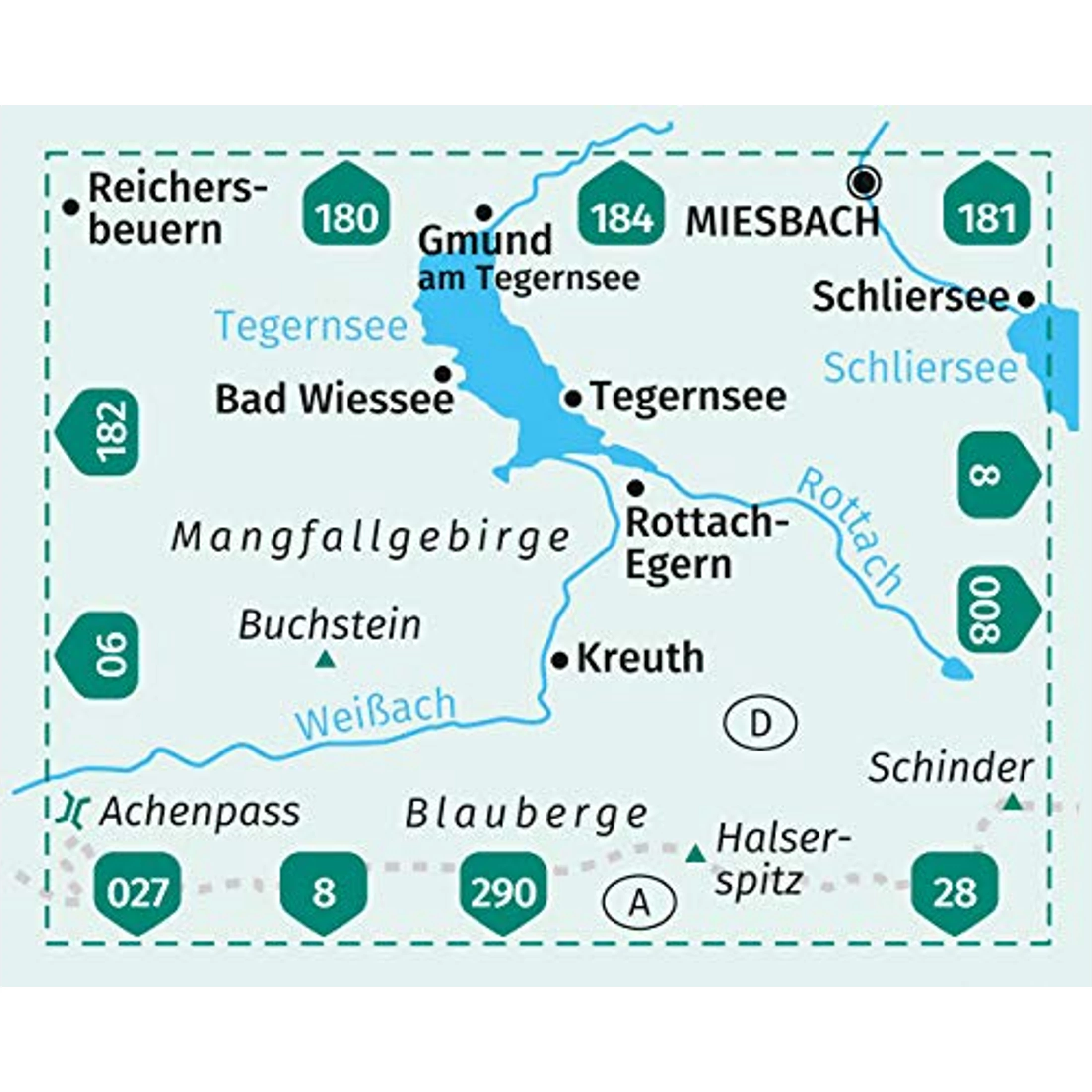 A bajorországi Tegernseer Tal túra-, és kerékpáros útvonalai, színes képekkel illusztrált információs füzettel kiegészítve, melyben további információk találhatók menedékházakról, helyi nevezetességekről, szabadidős tevékenységekről.