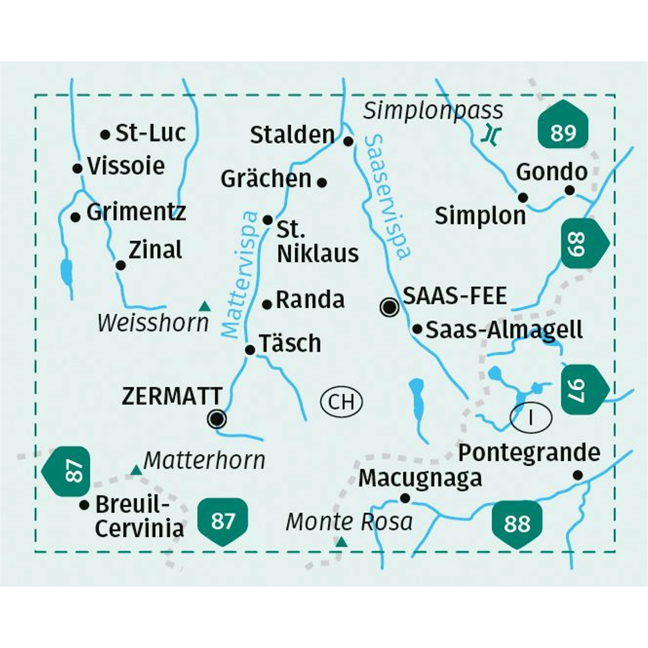 Zermatt - Saas Fee 1:40 000 méretarányú turistatérképe
