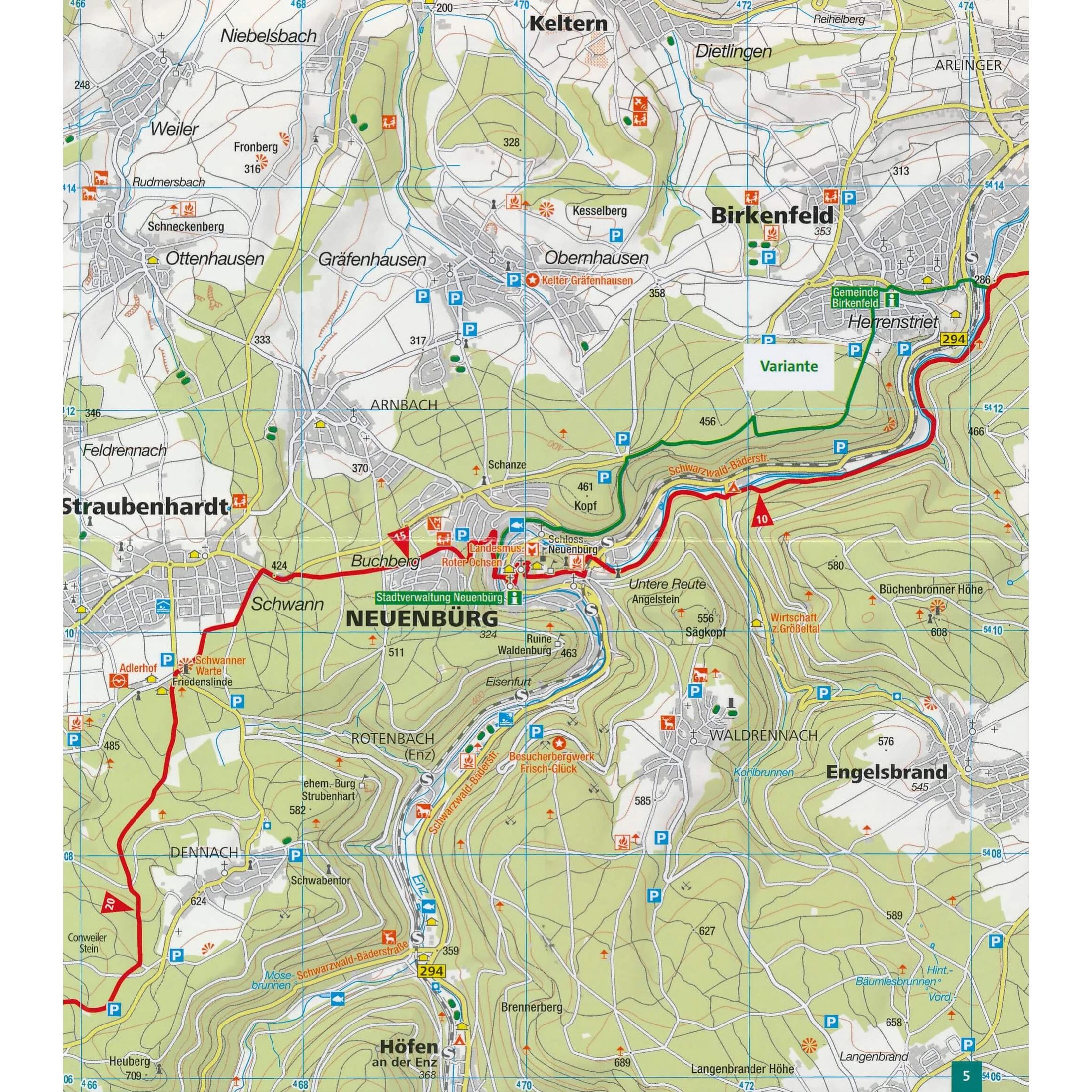 • Széles tűlevelű erdőkön és mély völgyeken keresztül, a Hornisgrinde felett, a Titisee-tó mellett, a Feldberg (1 495 m), - a német középhegység legmagasabb hegye - a Belchen és a Blauen felett halad át.