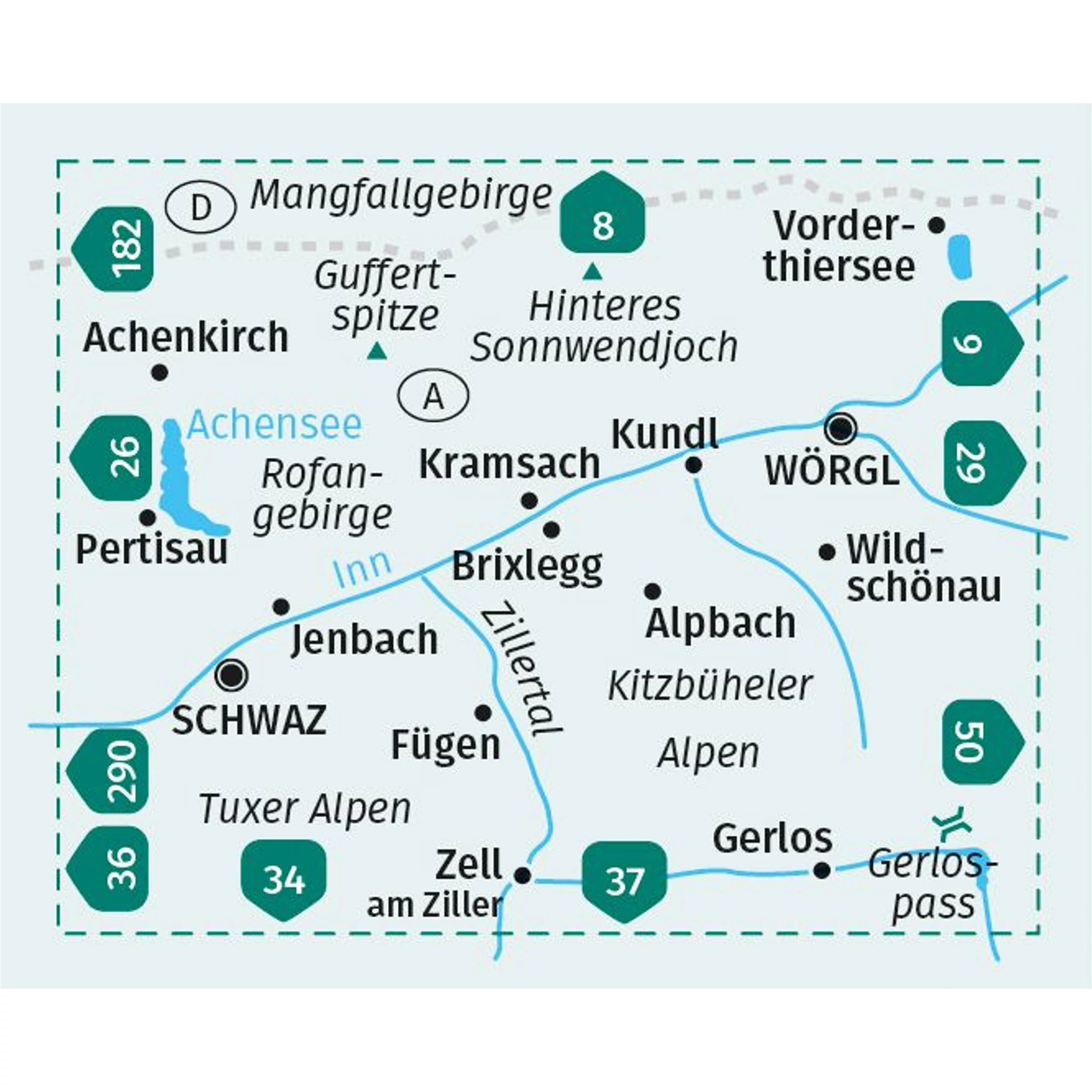 K 28 Vorderes Zillertal, Achensee, Alpbachtal, Wildschönau turistatérkép
