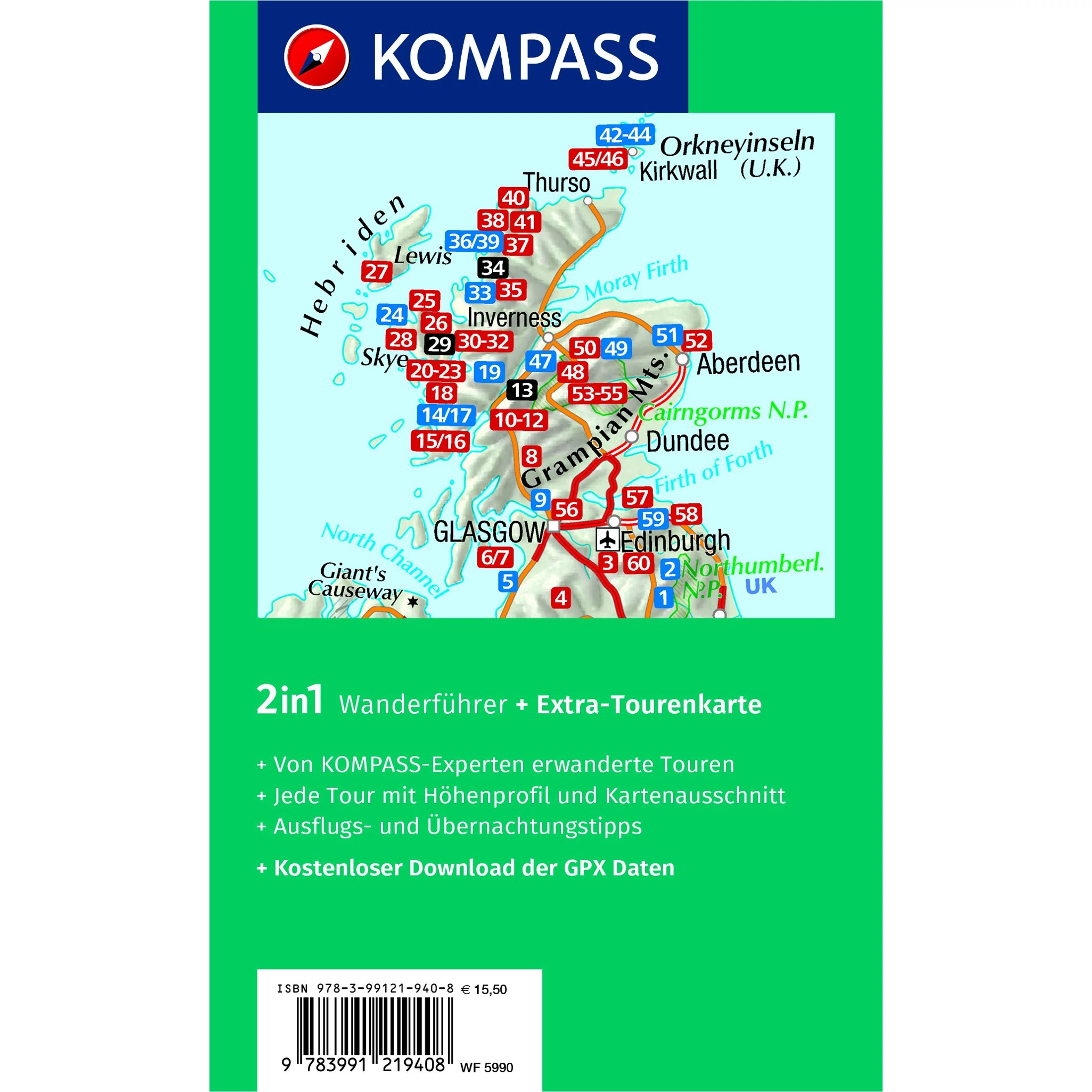 KOMPASS kirándulási útmutató Skóciában, túrázás a partokon és a felvidéken: kirándulási útmutató extra túratérképpel 1: 50000, 60 túra, letölthető GPS adatokkal.