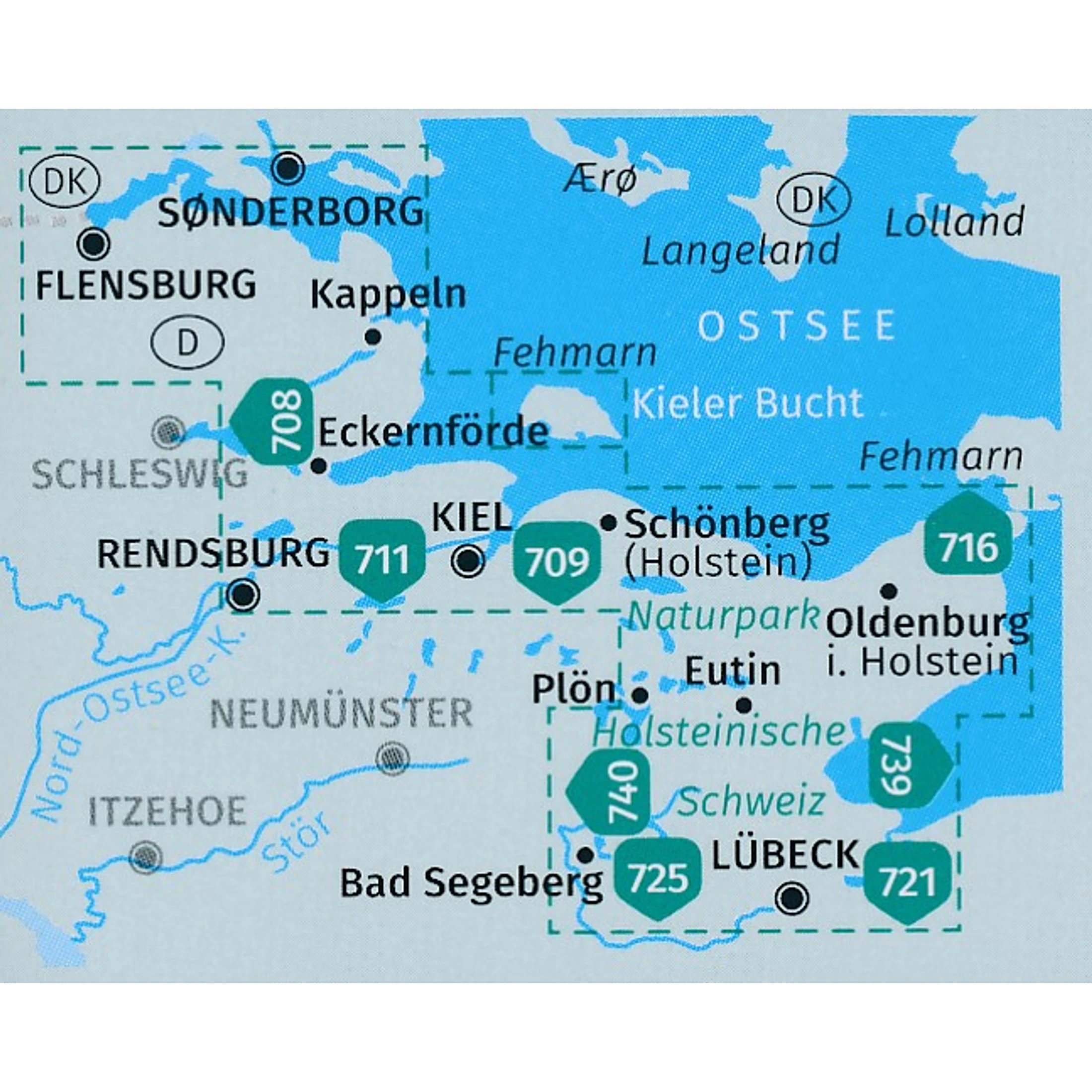 Városok/Falvak/területek: Sonderborg, Flensburg, Satrup, Kappeln, Süderbrarup, Eckernförde, Gettorf, Rendsburg, Kiel, Schönberg, Heiligenhafen, Lütjenburg, Oldenburg, Plön, Eutin, Neustadt (in Holstein), Travemünde, Bad Segeberg, Lübeck