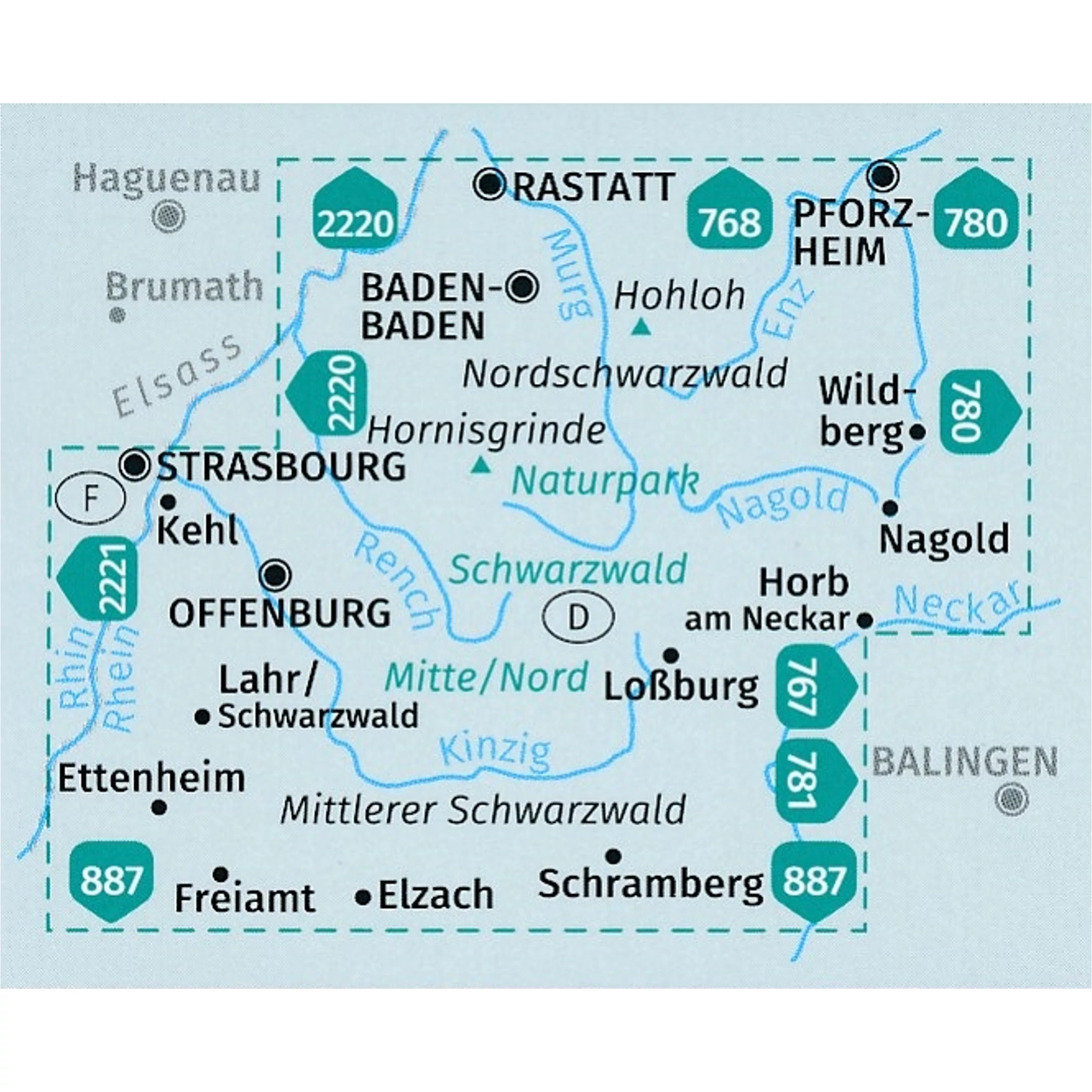 Folyók/tavak: Murg, Rench, Rajna, Enz, Nagold, Neckar, Kinzig