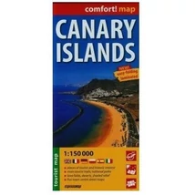 A Kanári szigeteket bemutató kétoldalas, laminált, könnyen kezelhető turisztikai térkép 1:150 000 (1 cm = 150 m) méretarányban.