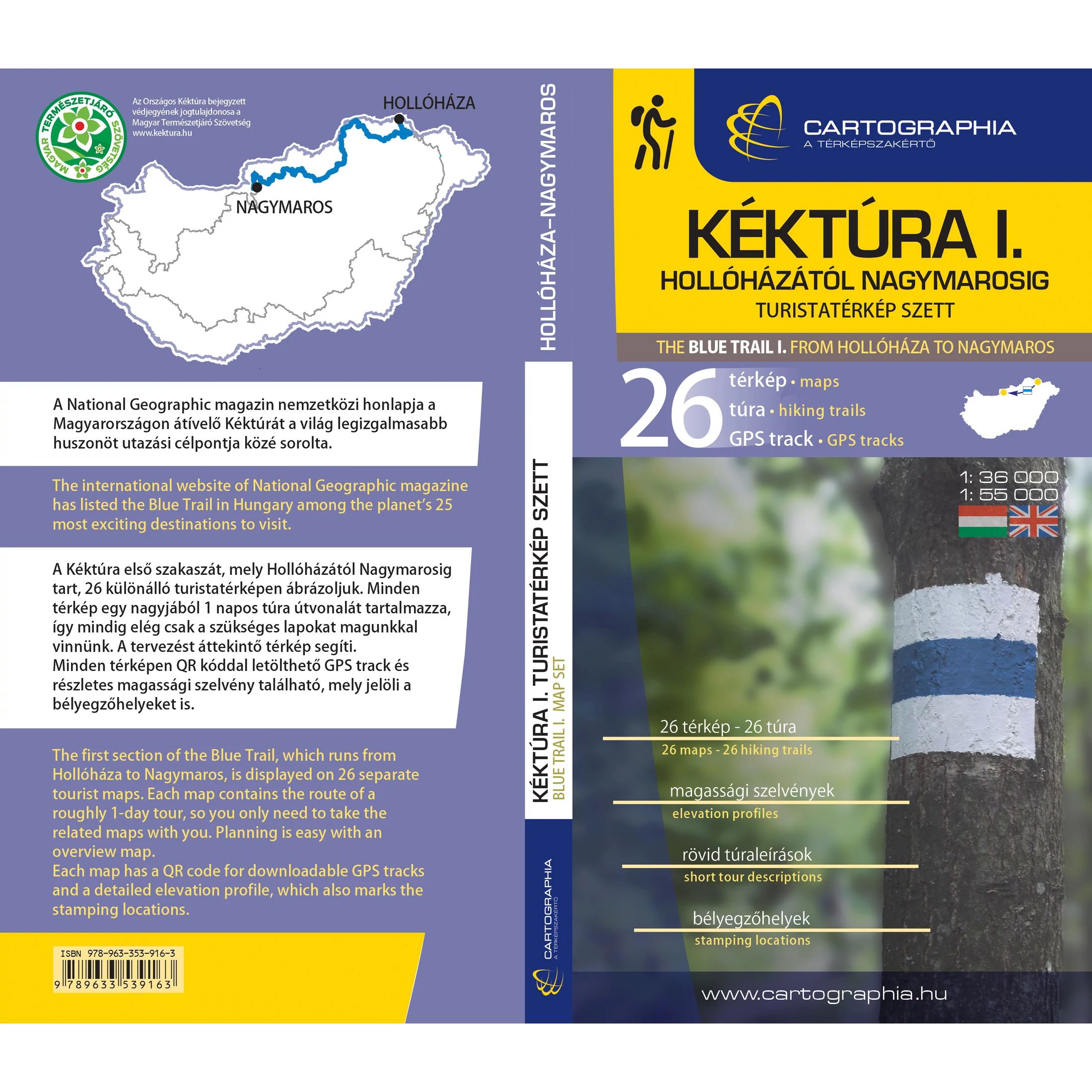 Új kiadványunk kimondottan a kéktúrázóknak készült, Hollóházától Nagymarosig 26 szakaszra bontva a Kéktúrát, külön térképet a kezedbe adva minden szakaszhoz! Praktikus, áttekinthető méretben, a Cartographia térképeire jellemző részletességgel.