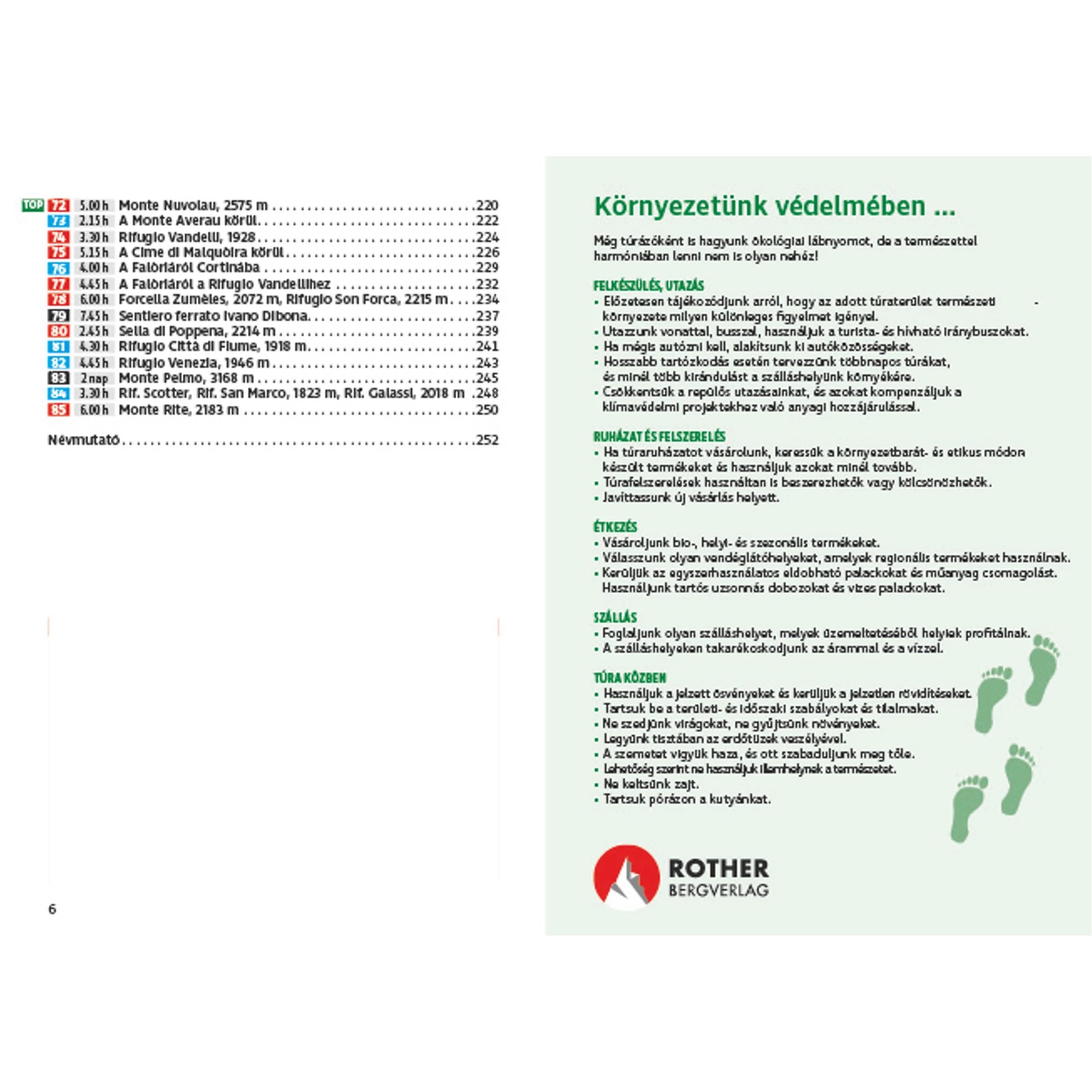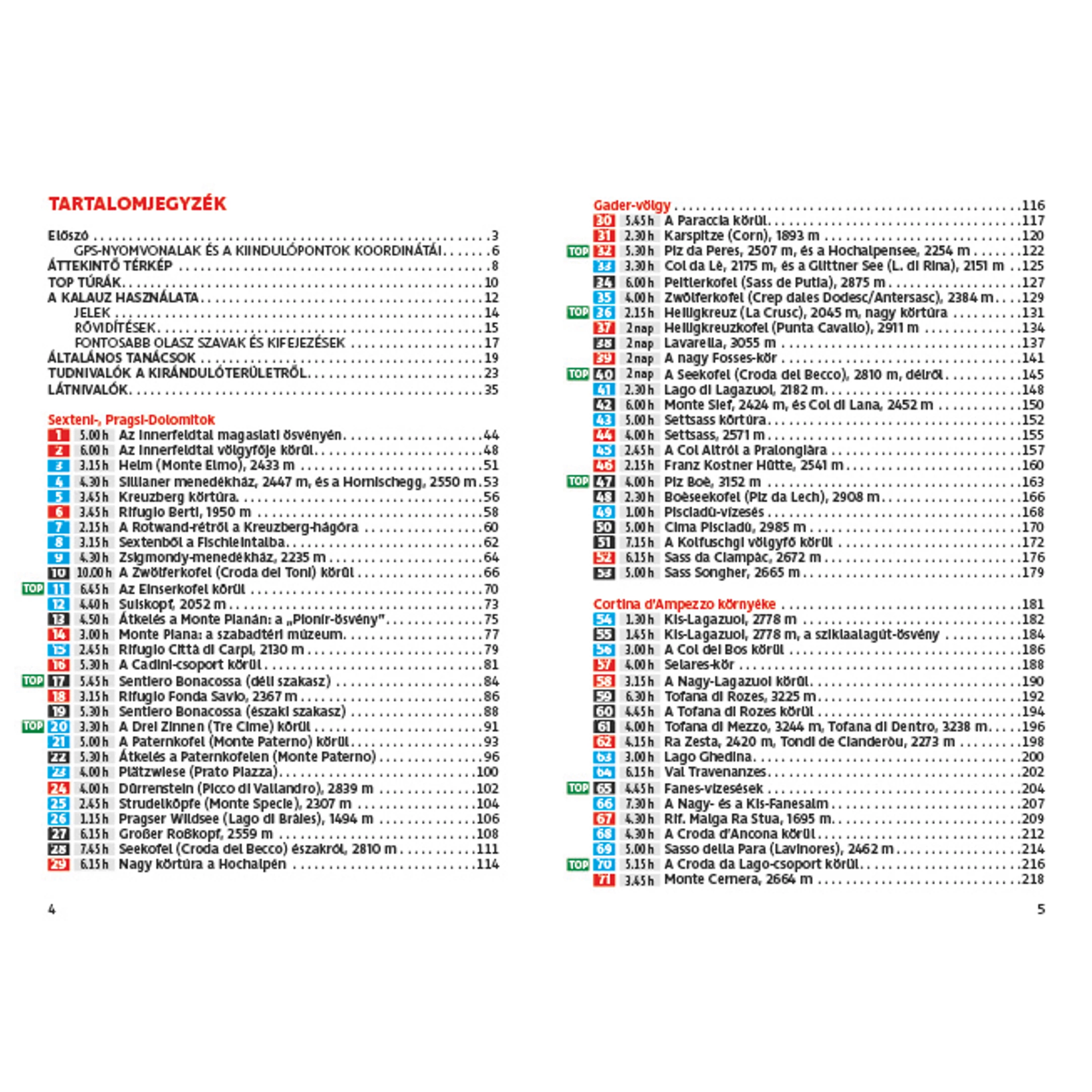 A Dolomitok Európa régóta kedvelt nyaraló területe. A látogatók egyaránt élvezhetik a völgyekben levő szálláshelyek és vendéglátóhelyek kényelmét, valamint a szabadidő aktív eltöltésének számtalan lehetőségét. Akiknek frissítő felüdülést nyújt a civilizációtól távoli hegyekben való kirándulás és túrázás, azoknak a Dolomitok a lehetőségek széles tárházát kínálja. Kalauzunk ebben igyekszik segítségére lenni azoknak, akik bakancsba bújva akarják felfedezni a terület szépségeit. Túraajánlataink pazar erdős-középhegységi területekre, mesésen szép vörösfenyvesekbe, füves rétekre, hatalmas sziklaóriásokra és a közöttük levő feneketlen szurdokokba, festői völgyekbe, álmos hegyi tavakhoz, biztonságos menedékházakhoz, és lélegzetelállító kilátópontokra invitálják az olvasót.