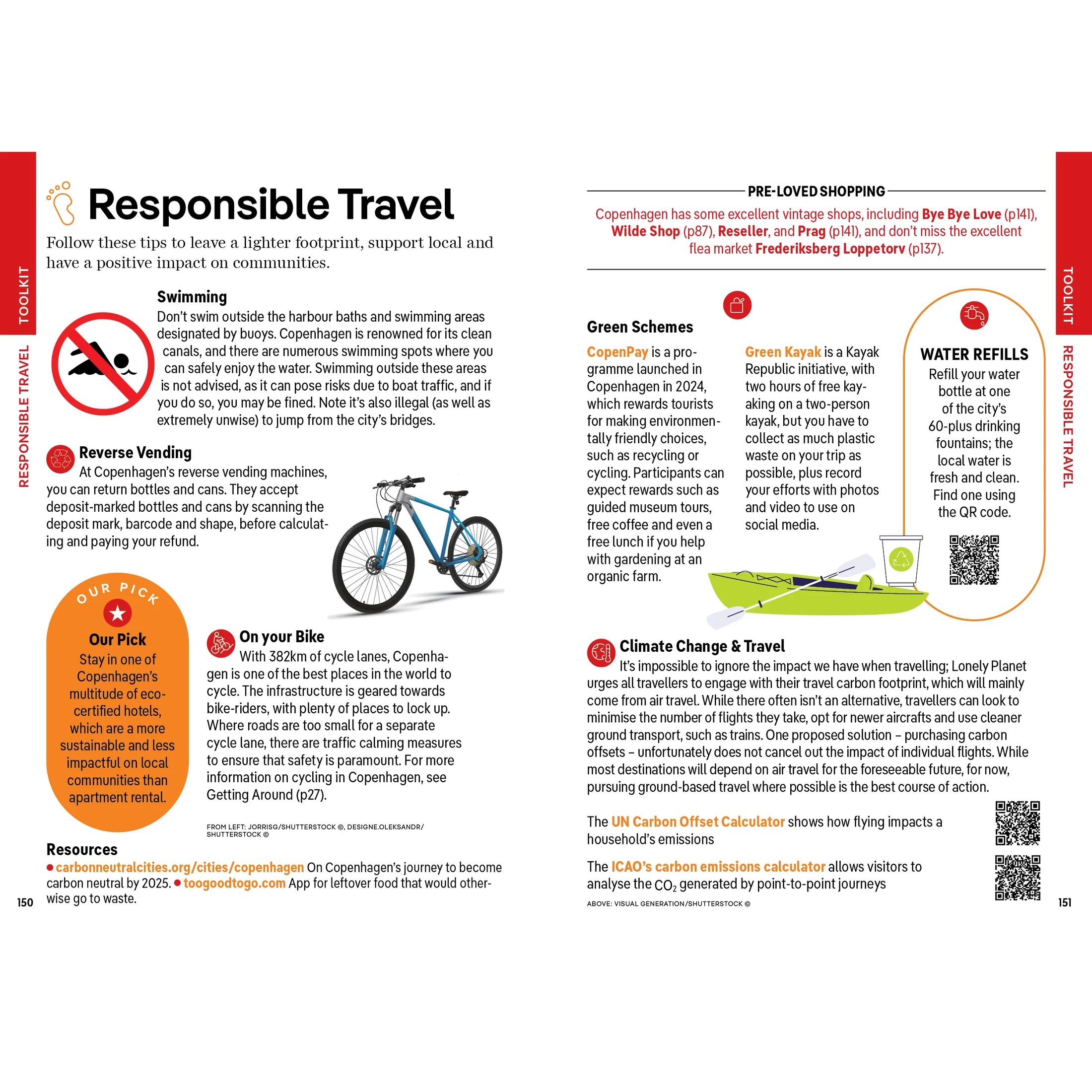 - Essential information toolkit containing tips on arriving, navigating transport confidently, local etiquette, using money, LGBTIQ+ travel advice, useful words and phrases, accessibility and responsible travel
