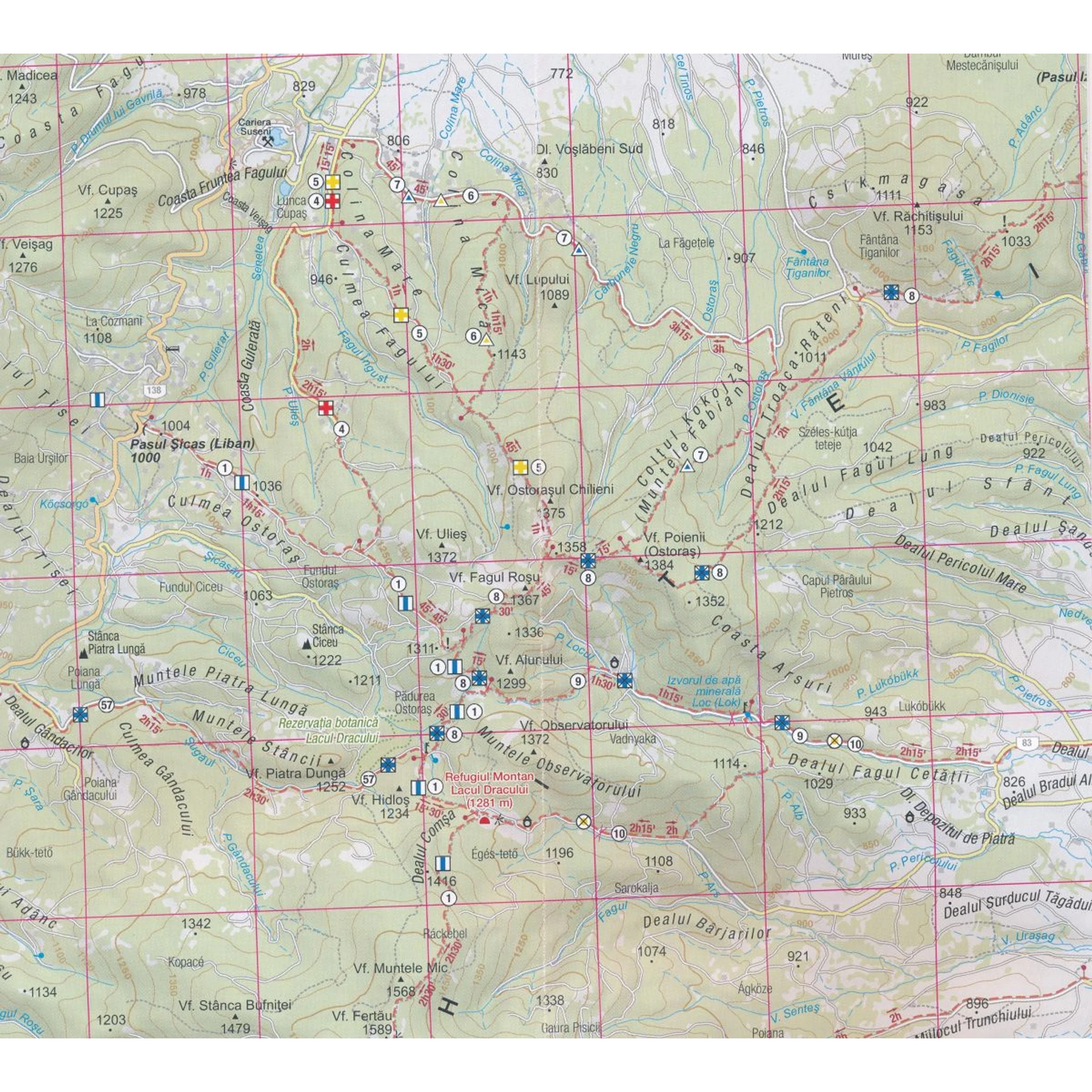Gredistye Muncsel – Csoklovina Natúrpark és az Oasa-tó területeit a turistatérkép részletesebb: 1:40 000 méretarányban ábrázolja.