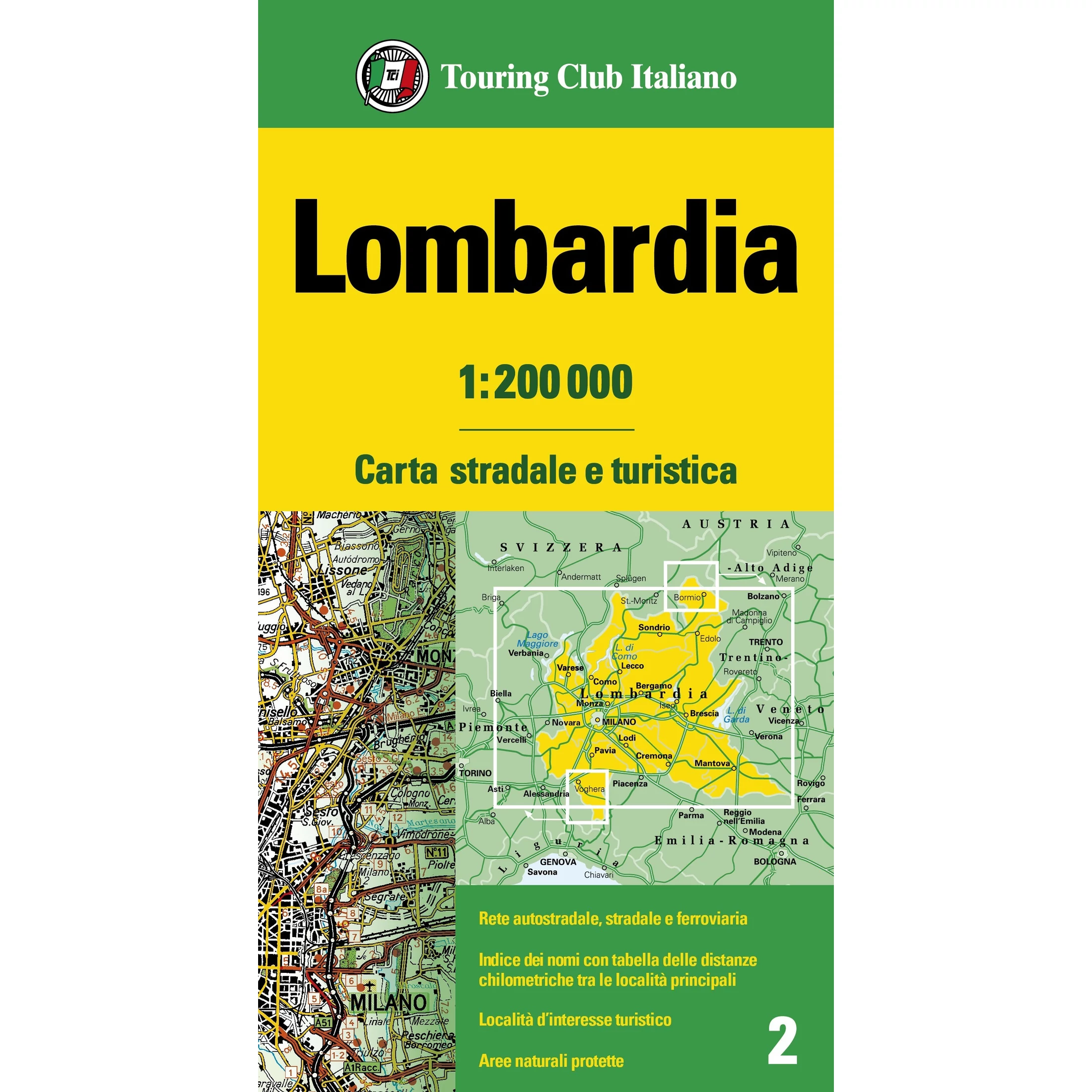 Turista- és autótérkép egyben. A térkép Olaszország Lombardia régiójának részletes úthálózatát tartalmazza 1:200 000 méretarányban. Gazdag tartalom, turisztikai információk, hátoldalon névmutató és távolságok km-ben.