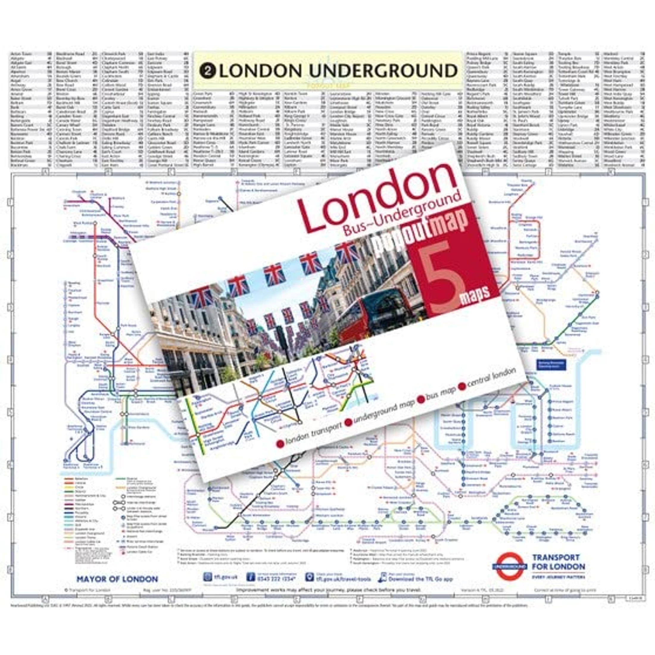 2 felugró térképet tartalmaz, amelyek lefedik a londoni buszjáratokat és a teljes londoni metróhálózatot, valamint további melléktérképek is találsz, amelyek a főbb buszjáratokat, a metró szívét és London központjának áttekintő térképét mutatják.