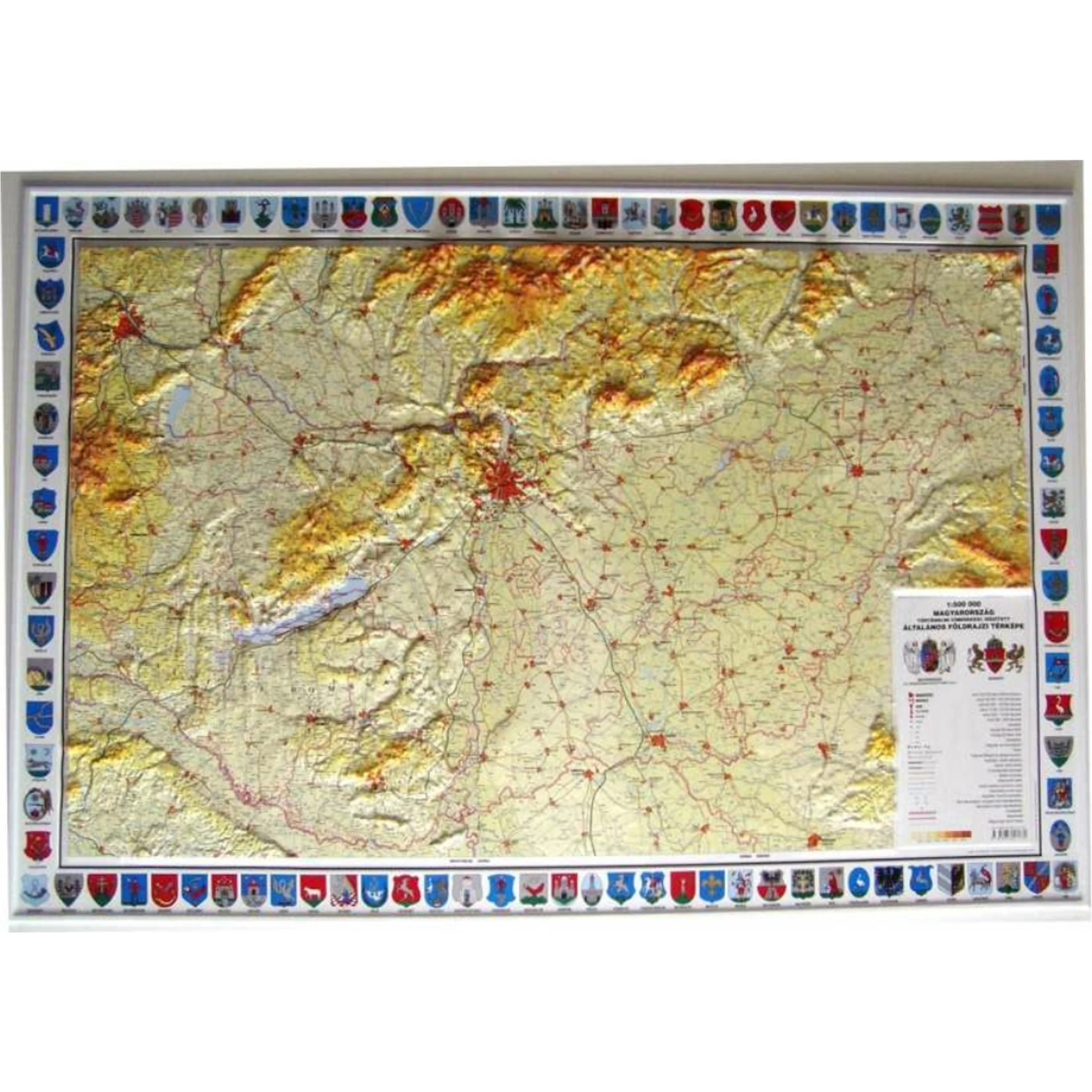 Magyarország földrajzi dombortérkép, címeres 118 X 82 - HM