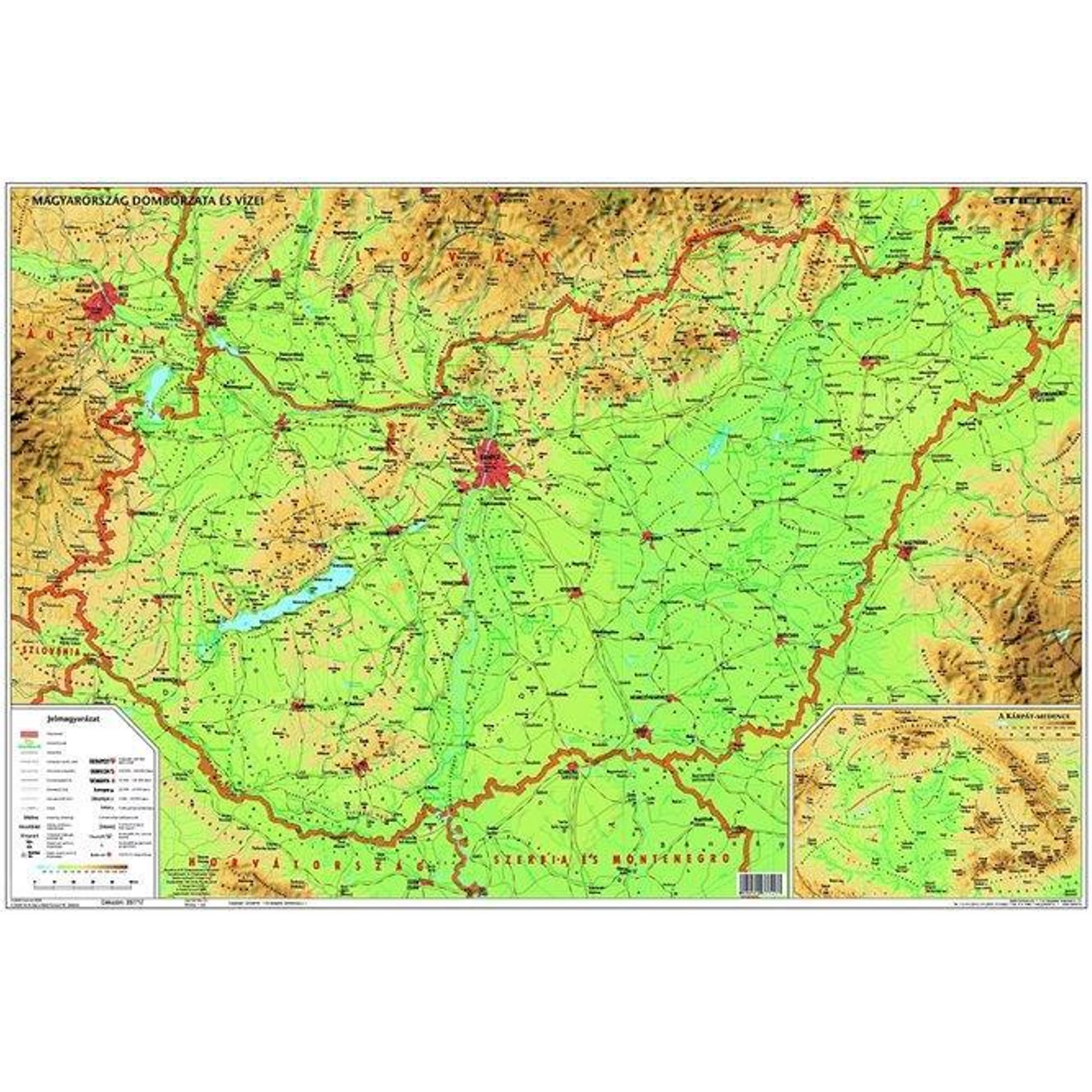 Magyarország domborzata/Kárpát-medence domborzata kétoldalas térkép fémléces 68 x 49 - Stiefel