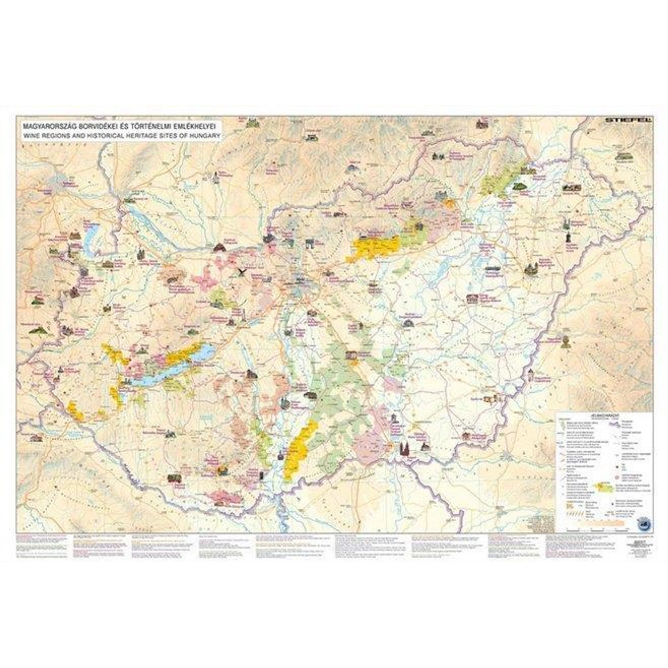 A kétoldalas könyöklő egyik oldalán Magyarország domborzati térképe látható, míg a hátoldalán egy különleges térkép Magyarország legfontosabb történelmi emlékhelyeit és borvidékeit mutatja be látványos grafikákkal.
