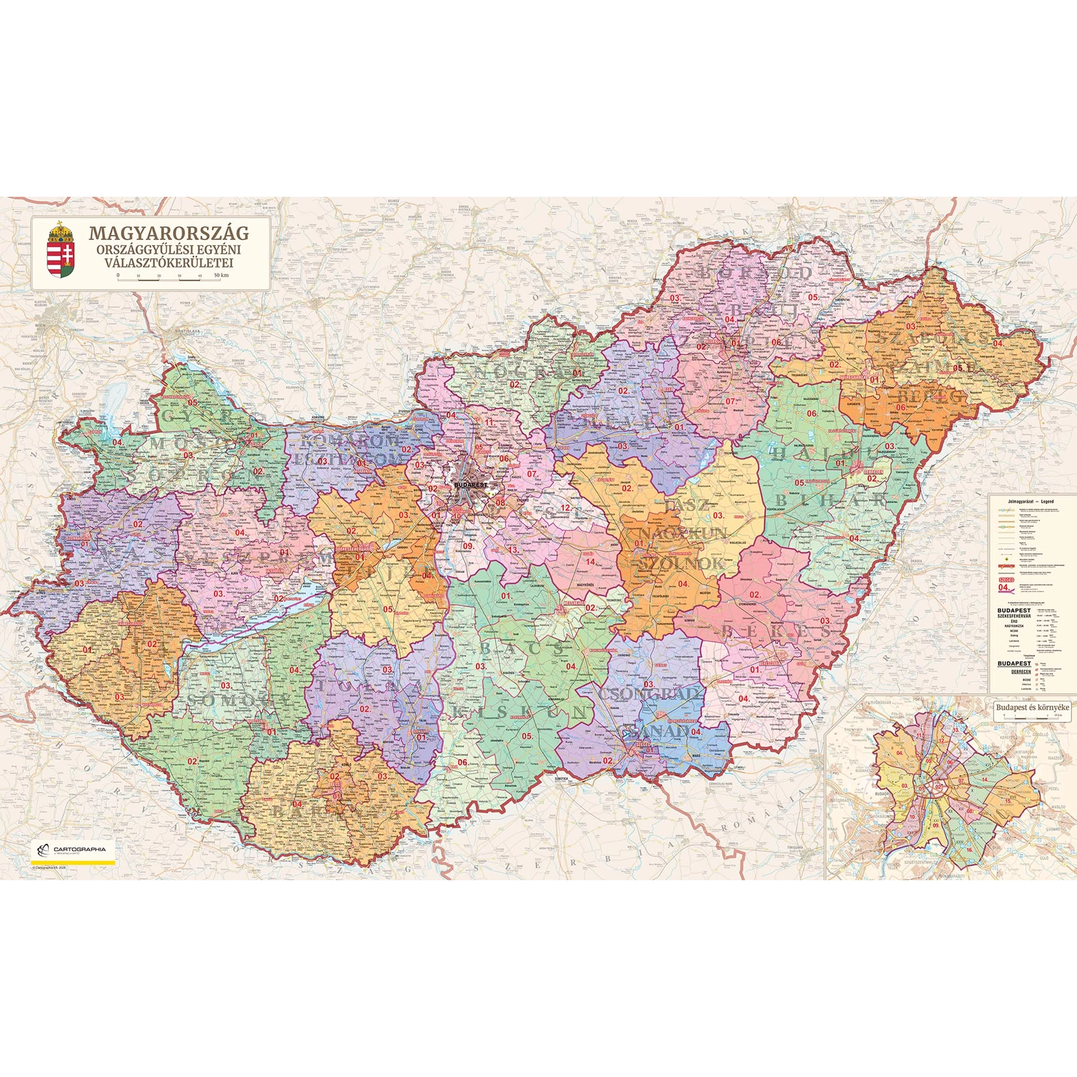 Magyarország egyéni választókerületei I. falitérkép a Cartographiatól - választható méretben és kivitelben, rendelésre is.