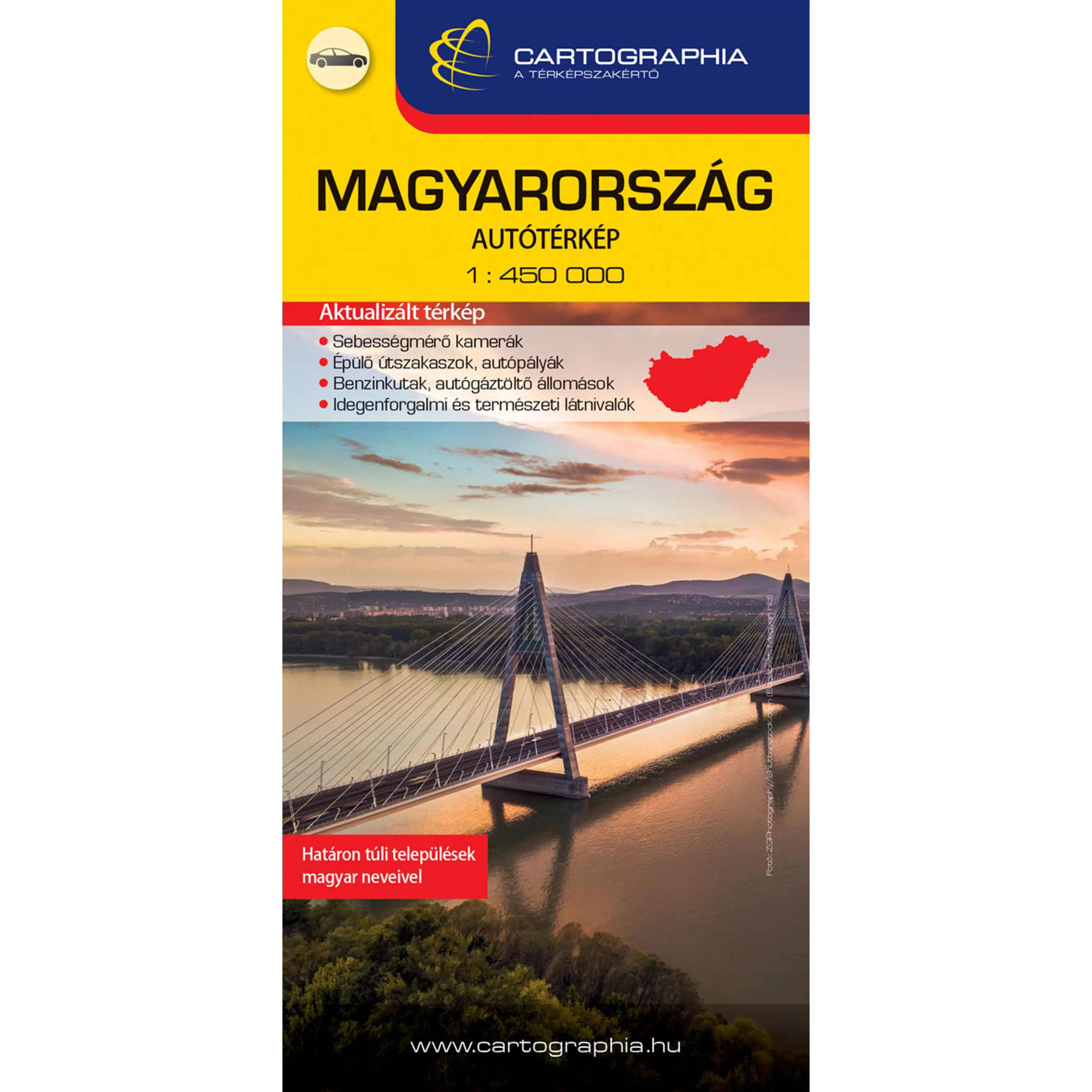 1:450 000 méretarányú autótérkép, a legfrissebb épülõ és tervezett autópálya-nyomvonalakkal.